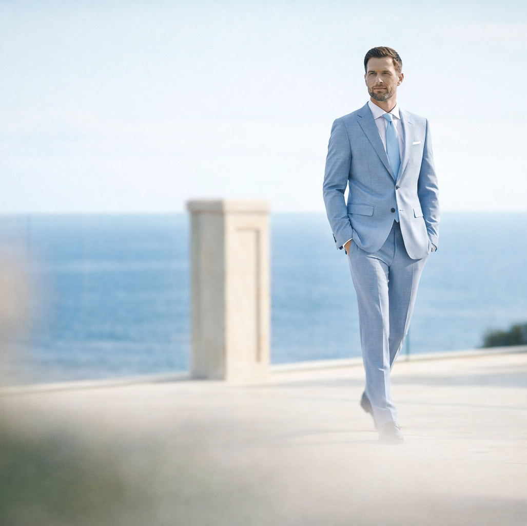 Binnen de huidige trouwmodetrends zien we ruimere, ontspannen stijlen en natuurlijke kleuren zoals steen, bruin en groen. Klassieke blauwtinten blijven favoriet, terwijl moderne pasvormen comfort combineren met een elegante, licht getailleerde snit. Hoogwaardige stoffen geven trouwpakken extra diepte en een luxe uitstraling.