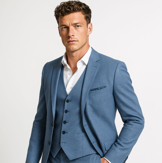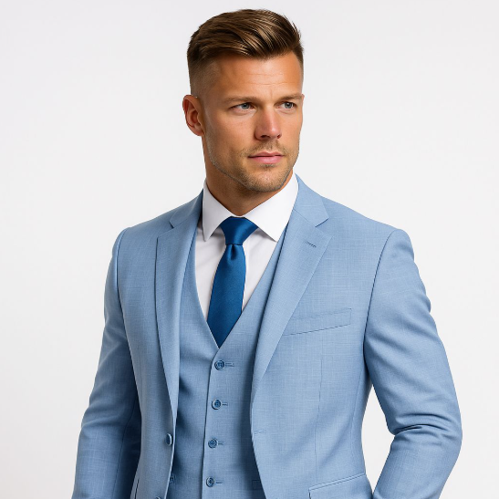 Binnen de huidige trouwmode trends zien we een verschuiving naar ruimere, ontspannen en natuurlijke stijlen. Aardetinten zoals steen, bruin, groen en framboos winnen terrein, terwijl traditionele blauwtinten – van lichtblauw tot diep marine – populair blijven voor de klassieke bruidegom. De moderne pasvorm combineert een losse, comfortabele uitstraling met de herkenbare Italiaanse, licht getailleerde snit, zodat elke man straalt op zijn trouwdag. Dankzij hoogwaardige stoffen, waarvan de vezels vóór het weven worden geverfd, krijgen trouwpakken meer diepte en levendigheid.