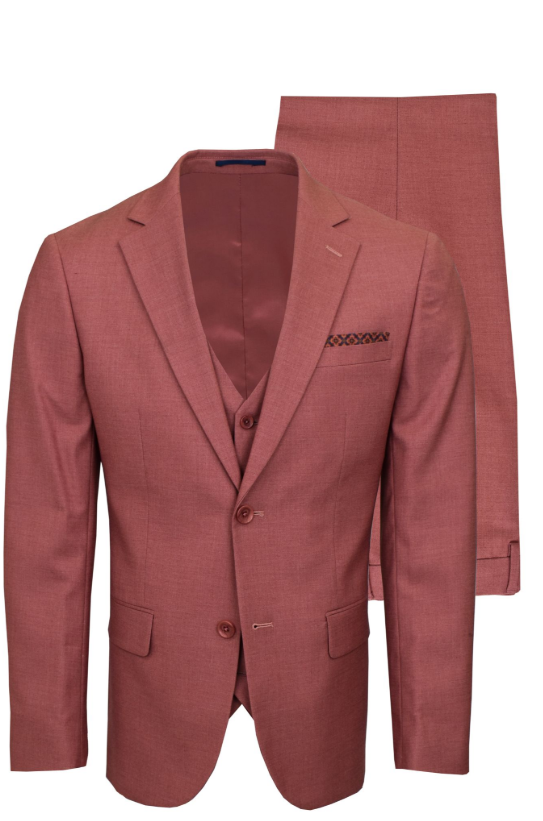 Ook in bruidsmode zien we nieuwe kleuren ontstaan. De opkomende blush-tint (poederroze) maakt prachtige combinaties mogelijk met rood- en rozetinten in het trouwpak. Daarnaast zijn blauwe trouwkostuums met roze accessoires zeer geliefd door de stijlvolle, romantische uitstraling.