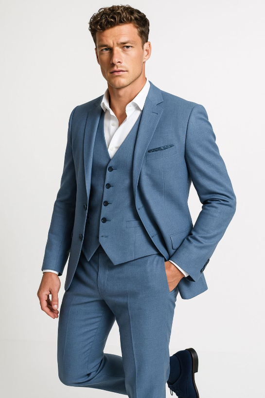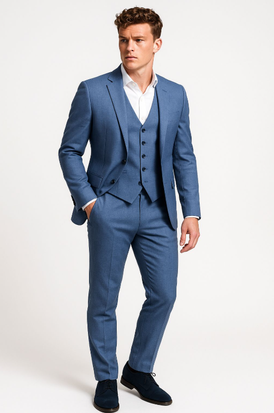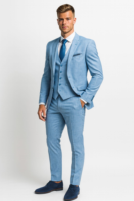Binnen de huidige trouwmode trends zien we een verschuiving naar ruimere, ontspannen en natuurlijke stijlen. Aardetinten zoals steen, bruin, groen en framboos winnen terrein, terwijl traditionele blauwtinten – van lichtblauw tot diep marine – populair blijven voor de klassieke bruidegom. De moderne pasvorm combineert een losse, comfortabele uitstraling met de herkenbare Italiaanse, licht getailleerde snit, zodat elke man straalt op zijn trouwdag. Dankzij hoogwaardige stoffen, waarvan de vezels vóór het weven worden geverfd, krijgen trouwpakken meer diepte en levendigheid.
