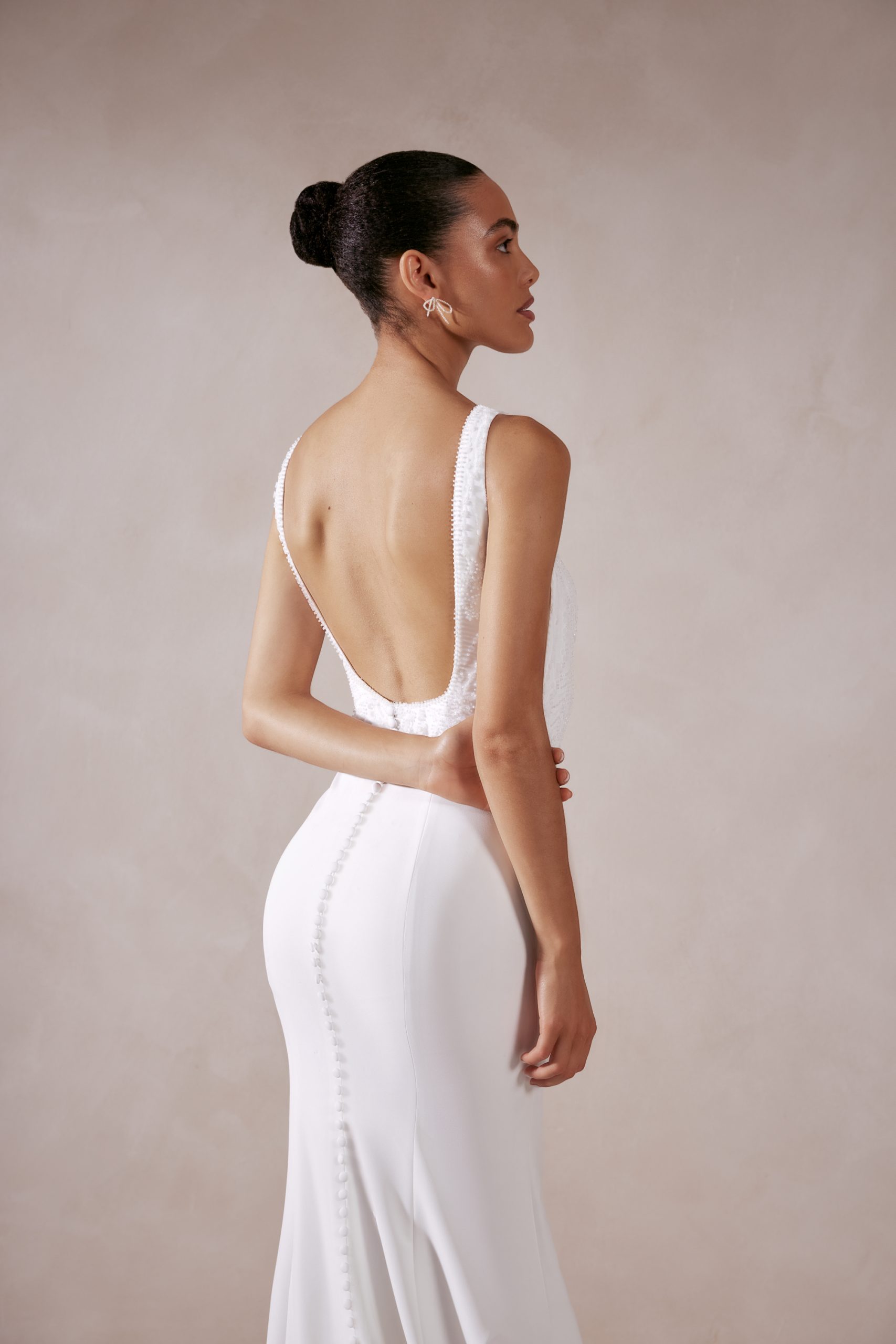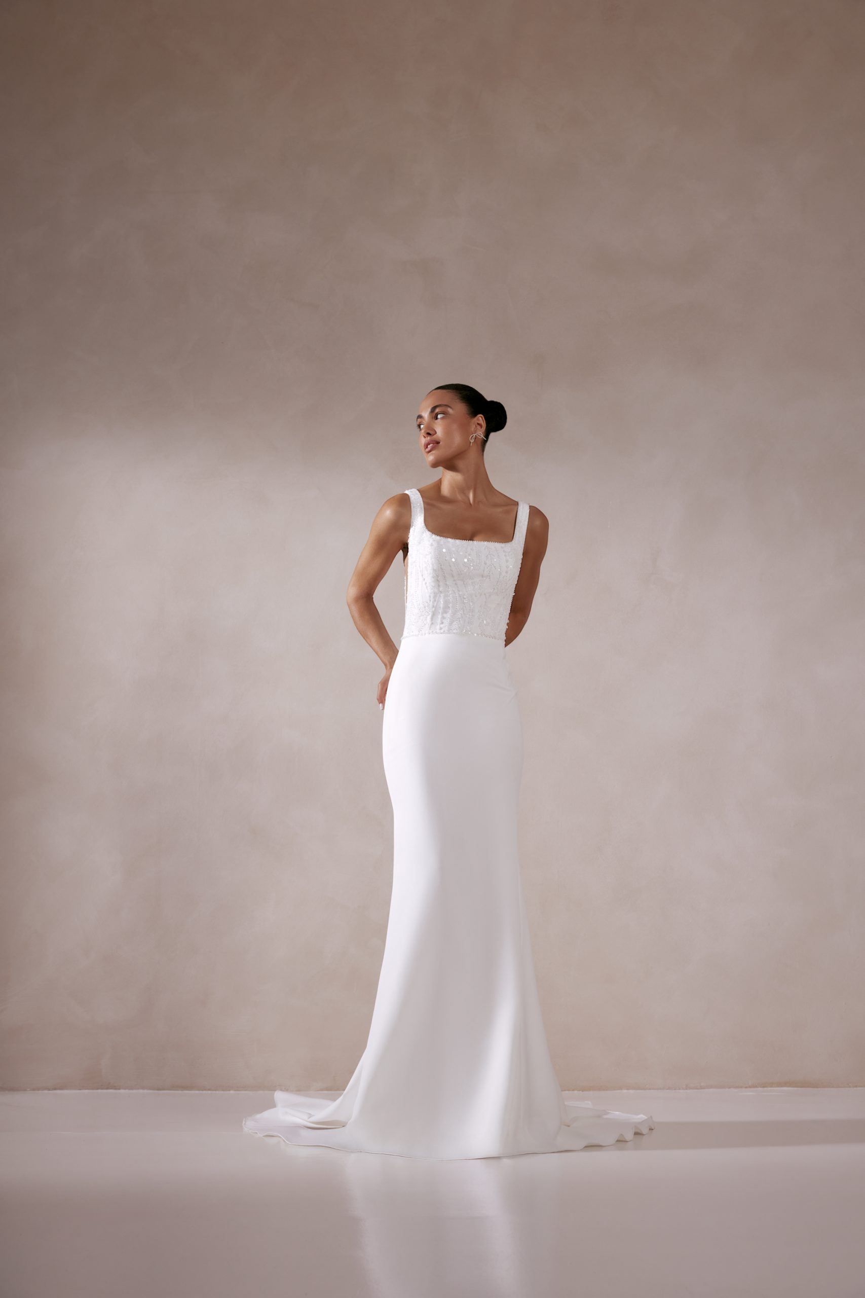 Liora is een collectie die de heldere geest van de moderne bruid uitstraalt. Liora belichaamt een moeiteloos chique esthetiek en bestaat uit informele maar geraffineerde jurken met strakke, minimale lijnen en een ontspannen styling. Delicate strikaccenten en charmeuse stoffen voegen een vleugje vrouwelijkheid toe, terwijl parels en subtiele schittering jeugdige elegantie brengen. Elke jurk is ontworpen om te stralen – perfect voor bruiden die op zoek zijn naar eenvoud met een moderne twist. Van zachte bloemen tot onweerstaanbare details op de rug, Liora vangt de essentie van authentieke schoonheid en stralend zelfvertrouwen.