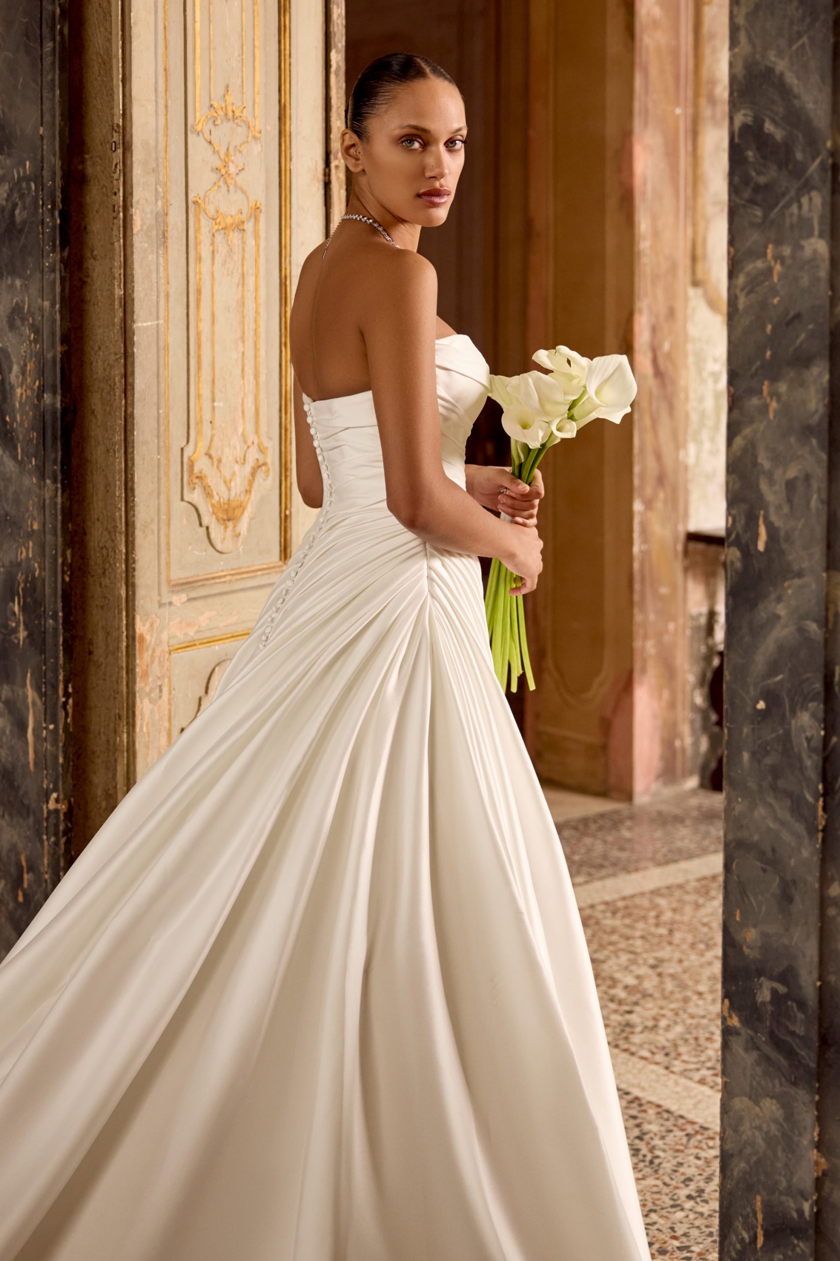 L’Amore is een collectie die tijdloze elegantie uitstraalt, met een vleugje Italiaanse luxe. Elke jurk is een perfecte combinatie van klassieke romantiek, ideaal voor de verfijnde bruid. Verwacht volumineuze ruches, prachtige slepen en glamourous kralen, maar ook klassieke stoffen zoals brokaat en kordelkant. Gestructureerde korsetten, moderne halslijnen en elegante basque taille maken L’Amore de ideale keuze voor de moderne bruid.