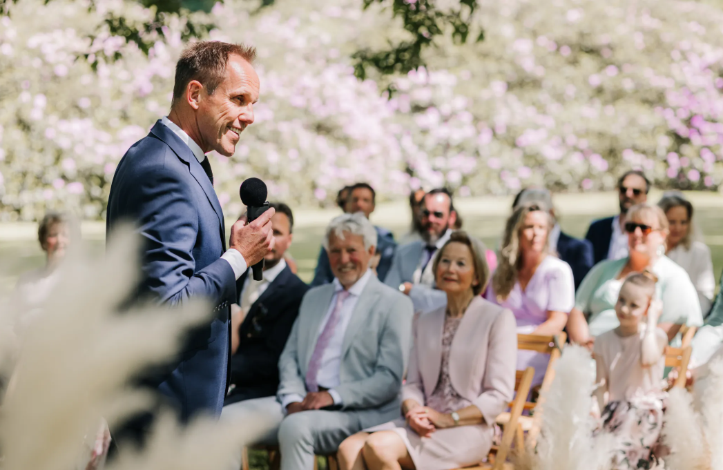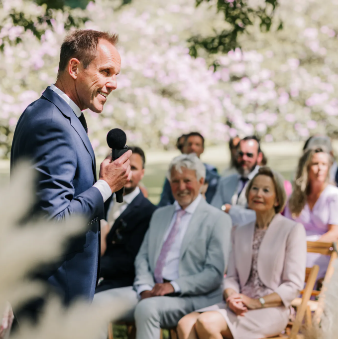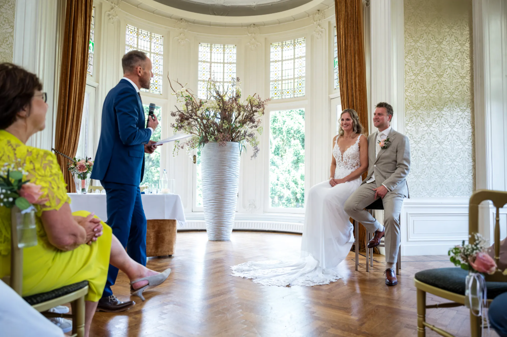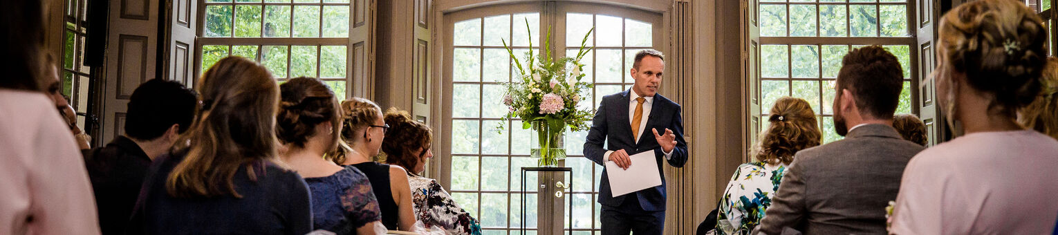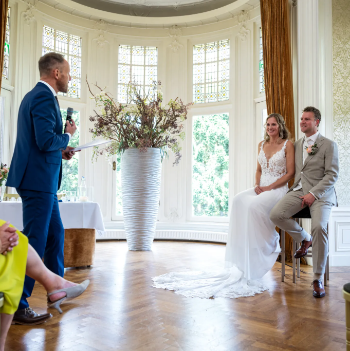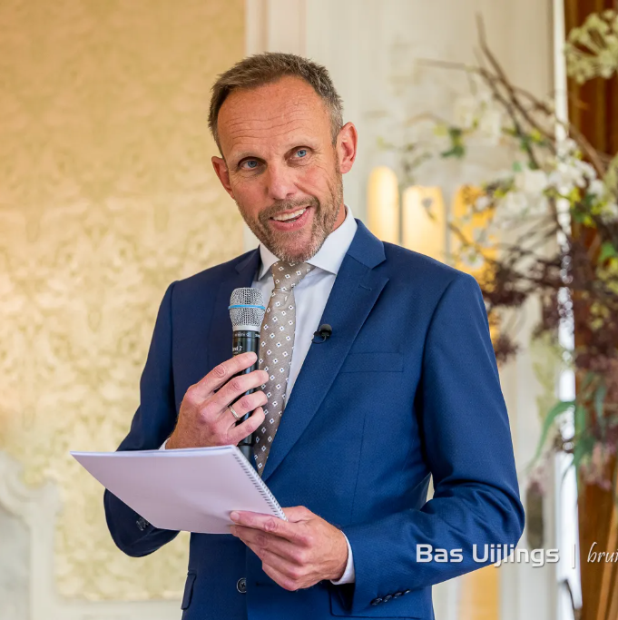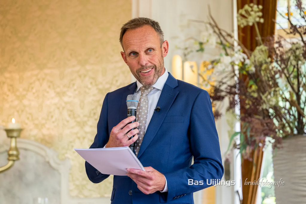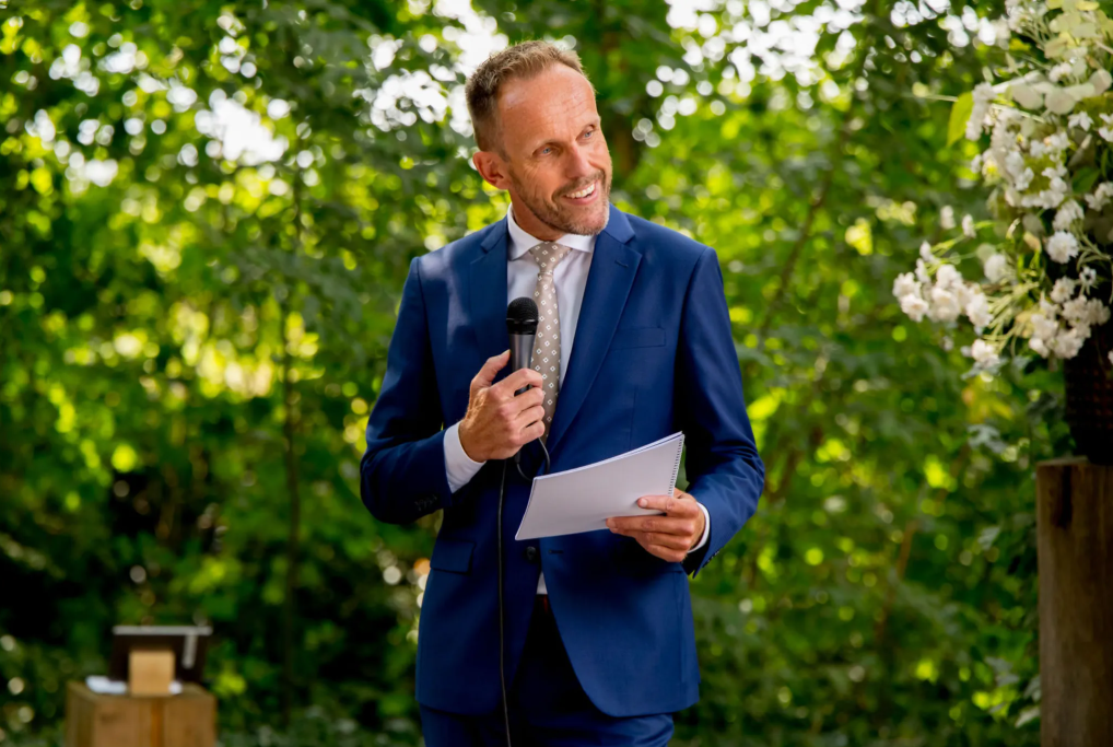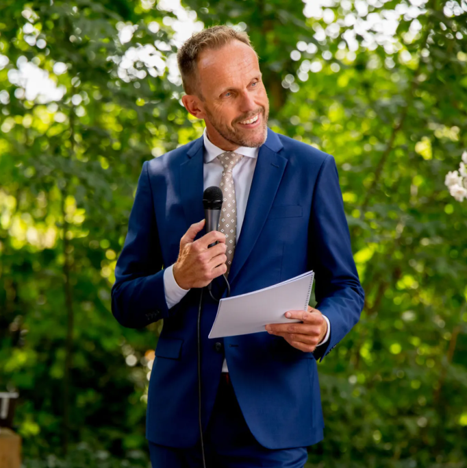 Mijn naam is Mark van Leeuwen. Ik ben spreker, mag jullie officieel trouwen en kijk er naar uit om jullie liefdesverhaal op interactieve wijze te vertellen.