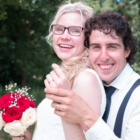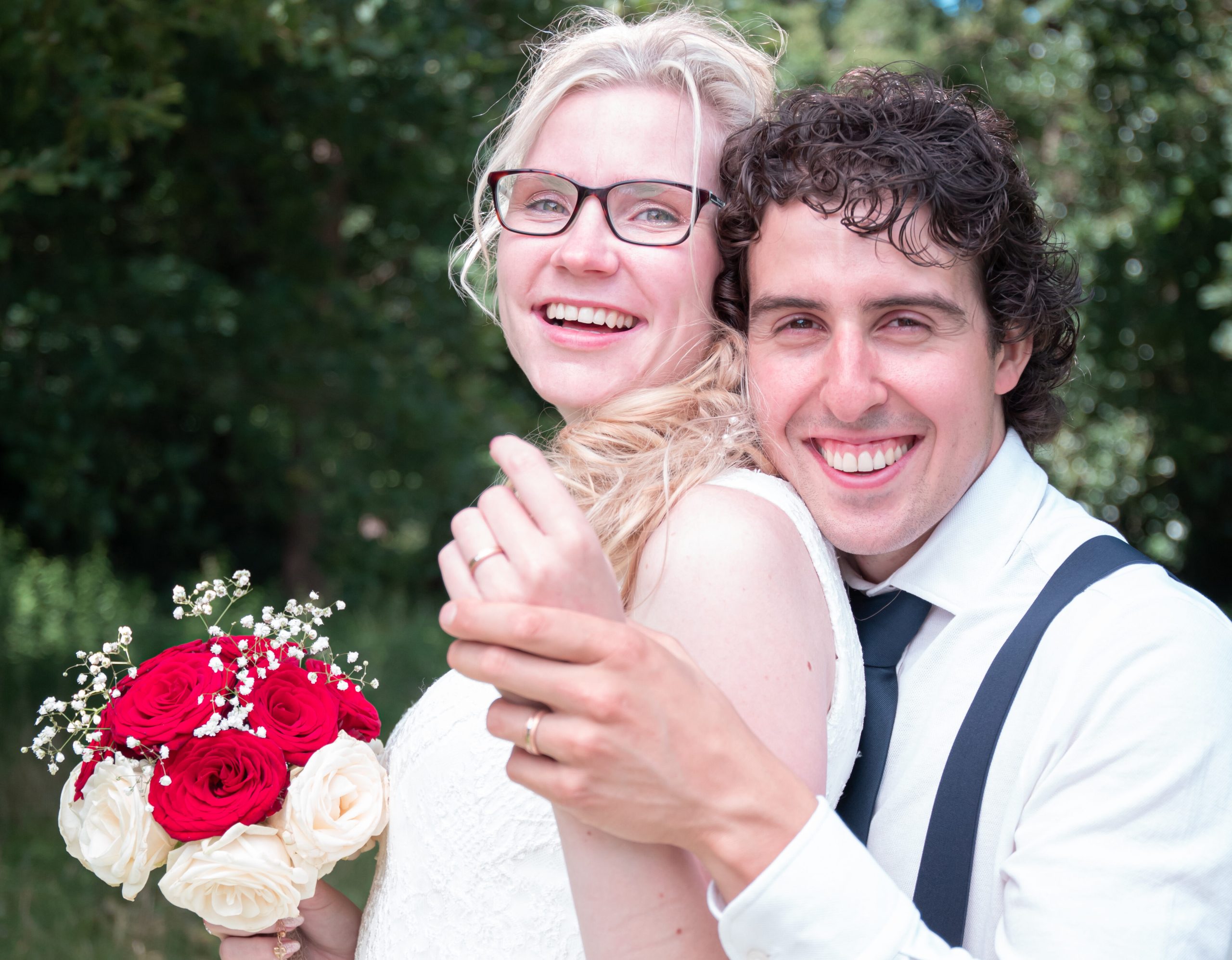 “Mijn opa en oma zijn de belangrijkste mensen in mijn leven en door hun leeftijd weten we niet hoe lang zij nog bij ons zijn. Daarom zijn we op 29 juli vorig jaar voor de wet getrouwd in Nederland. Op het gemeentehuis mochten alleen de getuigen mee naar binnen en daarna hebben we taart gegeten met de mensen die ons het dierbaarst zijn. Vervolgens hebben we foto’s gemaakt en zijn er de rest van de dag verschillende mensen in groepjes van maximaal tien personen langsgekomen om ons te feliciteren. Zo konden wij onze dag toch delen en hoefden we de gastenlijst niet in te korten. En die bruiloft in Italië? Die doen we als we vijf jaar getrouwd zijn!” – Beau