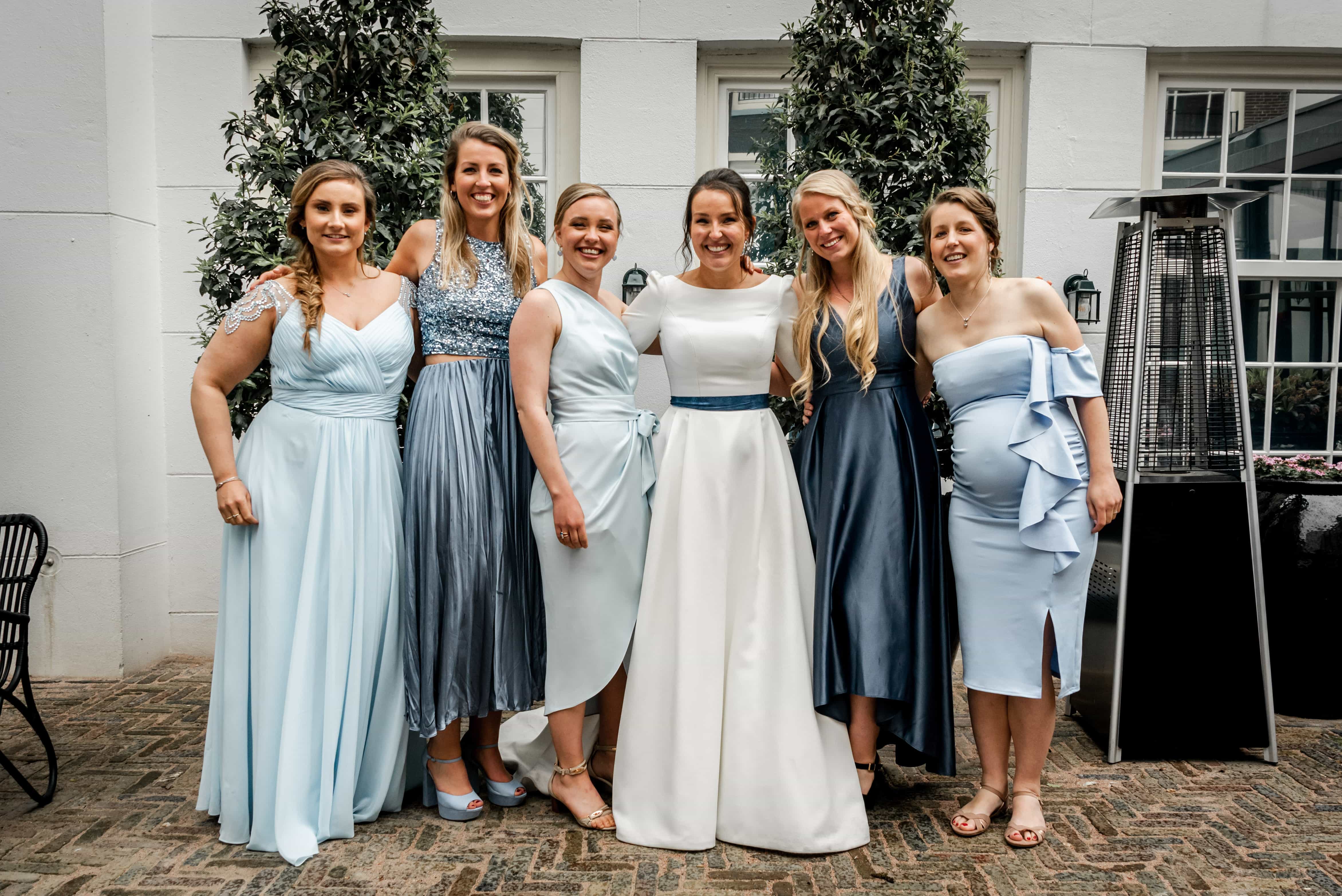 Janneke haalde haar inspiratie niet alleen van Pinterest, maar ook van de klassieke trouwfilm Bride Wars uit 2009 (met Kate Hudson en Anne Hathaway). In die film draagt de bruid namelijk een prachtige trouwjurk van Vera Wang met daaromheen een grijs lint. βIk wilde niets liever dan ook een lint om mijn bruidsjurk en ik besloot voor een blauw lint te gaan, passend bij de jurken van mijn bruidsmeisjes. Van tevoren vroeg iedereen wat ik nou met dat βstomme lintβ moest. Maar zodra ze mij zagen, vonden ze het gelukkig net zo mooi als ik.β
