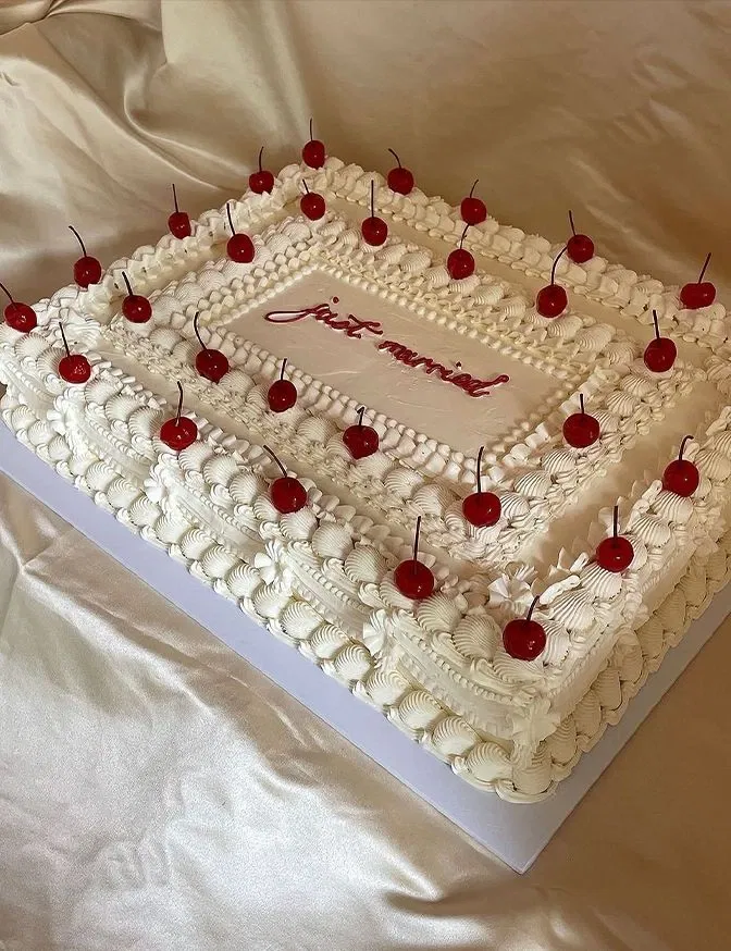 Houd je van een beetje nostalgie? Goed nieuws: de jaren ’80 zijn terug. Denk aan taarten met veel botercrème, strikken, slingers en zelfs het klassieke bruidspaar bovenop. Het is een tikkeltje kitsch, maar juist daarom heel charmant. Ook de bekende kanten details en de ouderwetse zuiltjes tussen de taartlagen zien we weer terug.