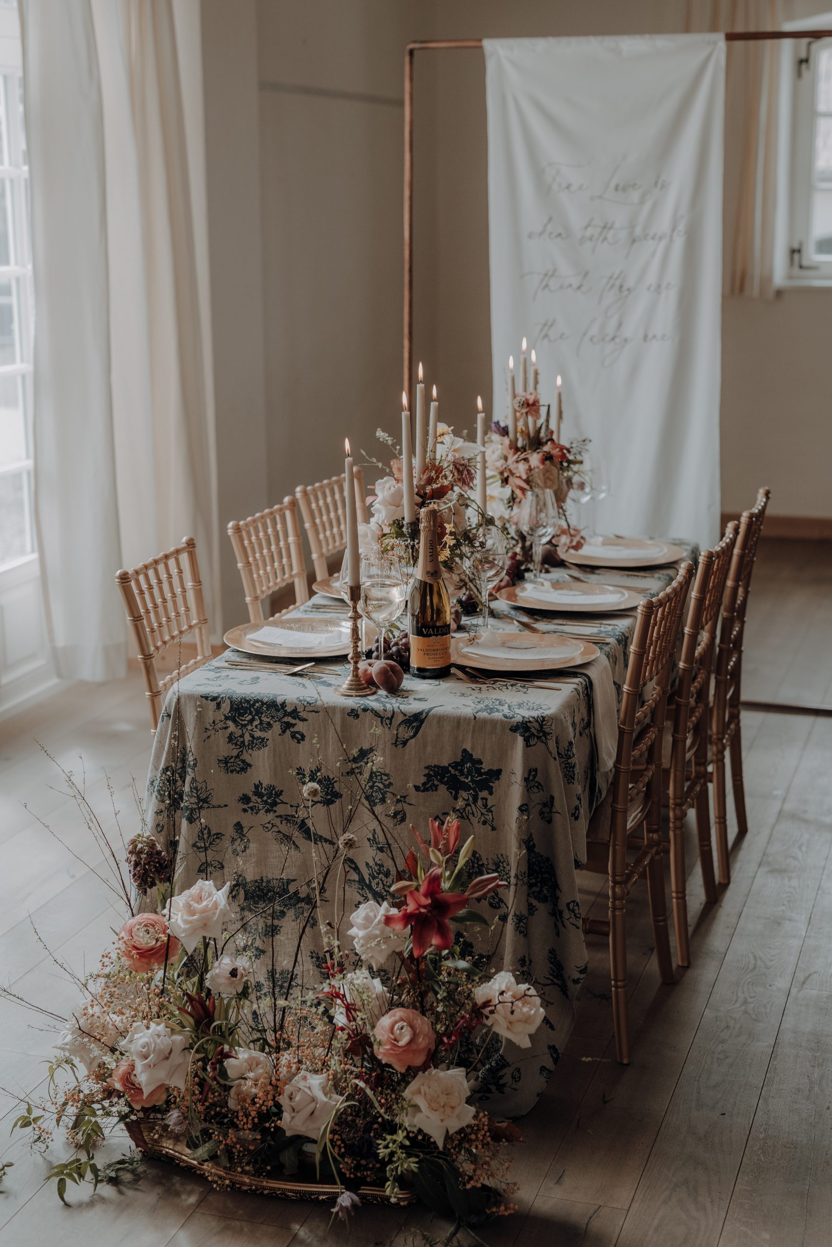 Bekijk alle decoratie & styling- Gepersonaliseerde banners van stof, papier of hout met jullie namen en trouwdatum in passende kleuren.