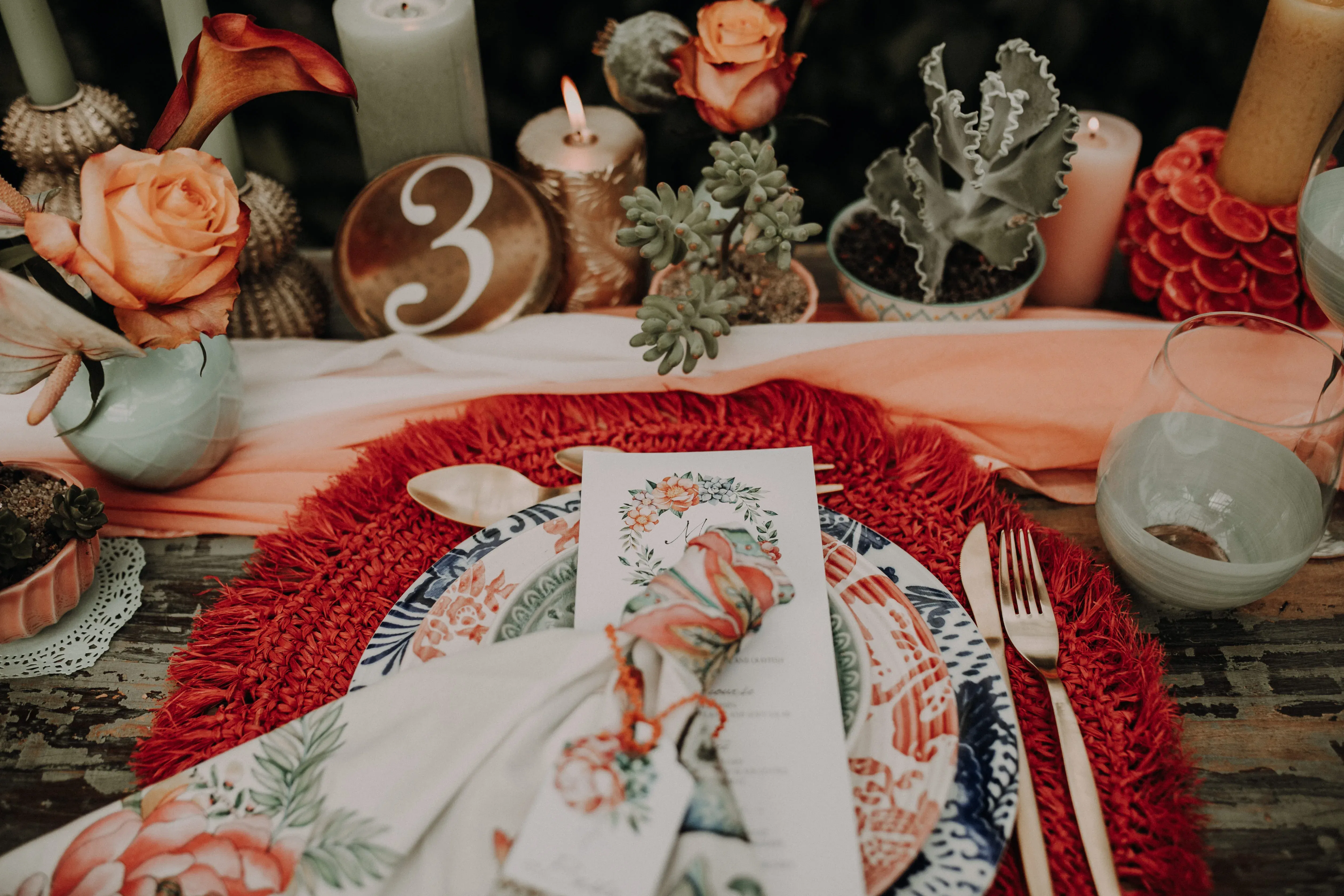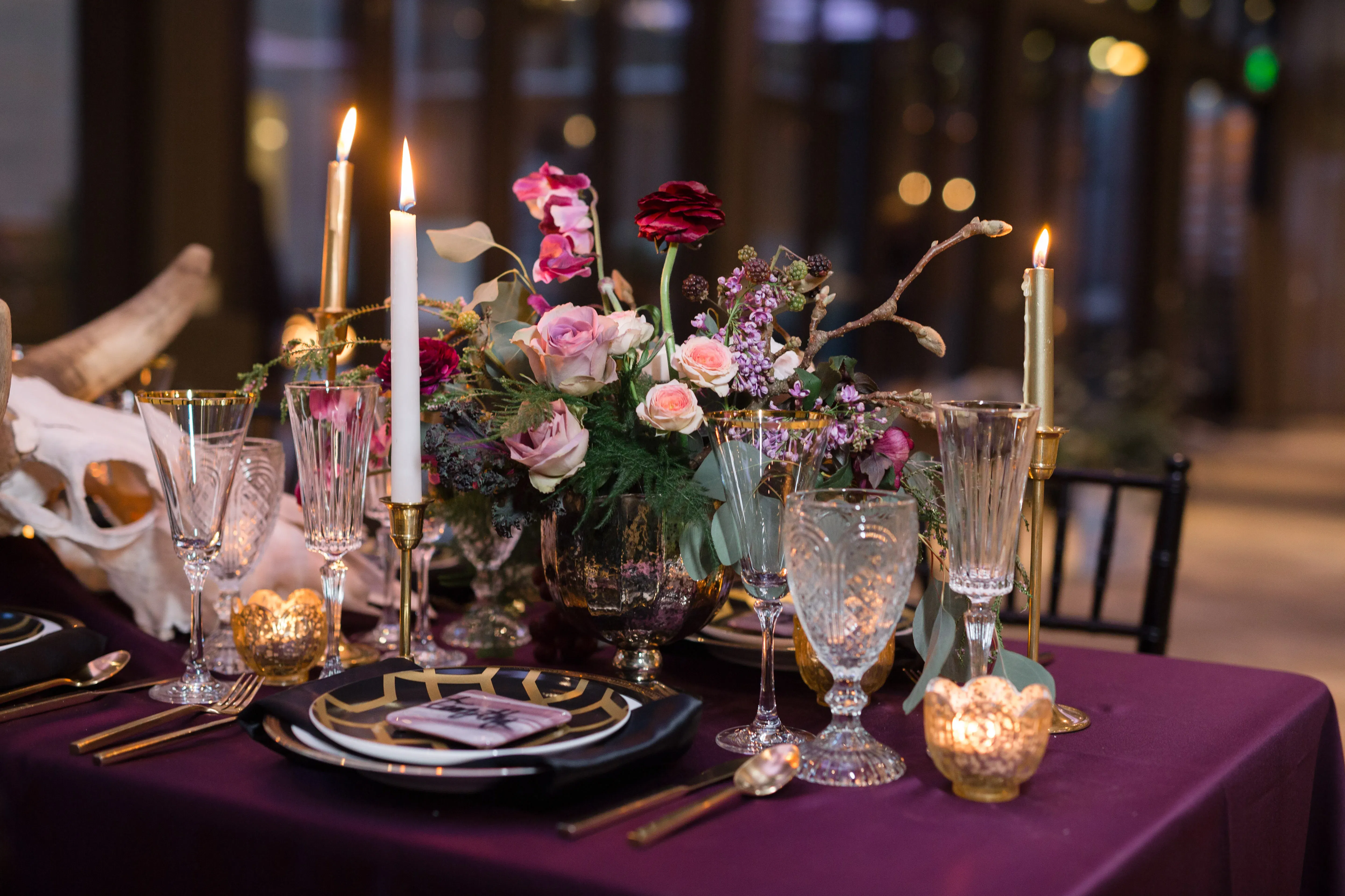 Een moody bruiloftsthema is geรฏnspireerd op donkere en intense kleuren en een romantische sfeer. Het draait om een mysterieuze en dramatische esthetiek, met veel aandacht voor verlichting en de juiste sfeer.