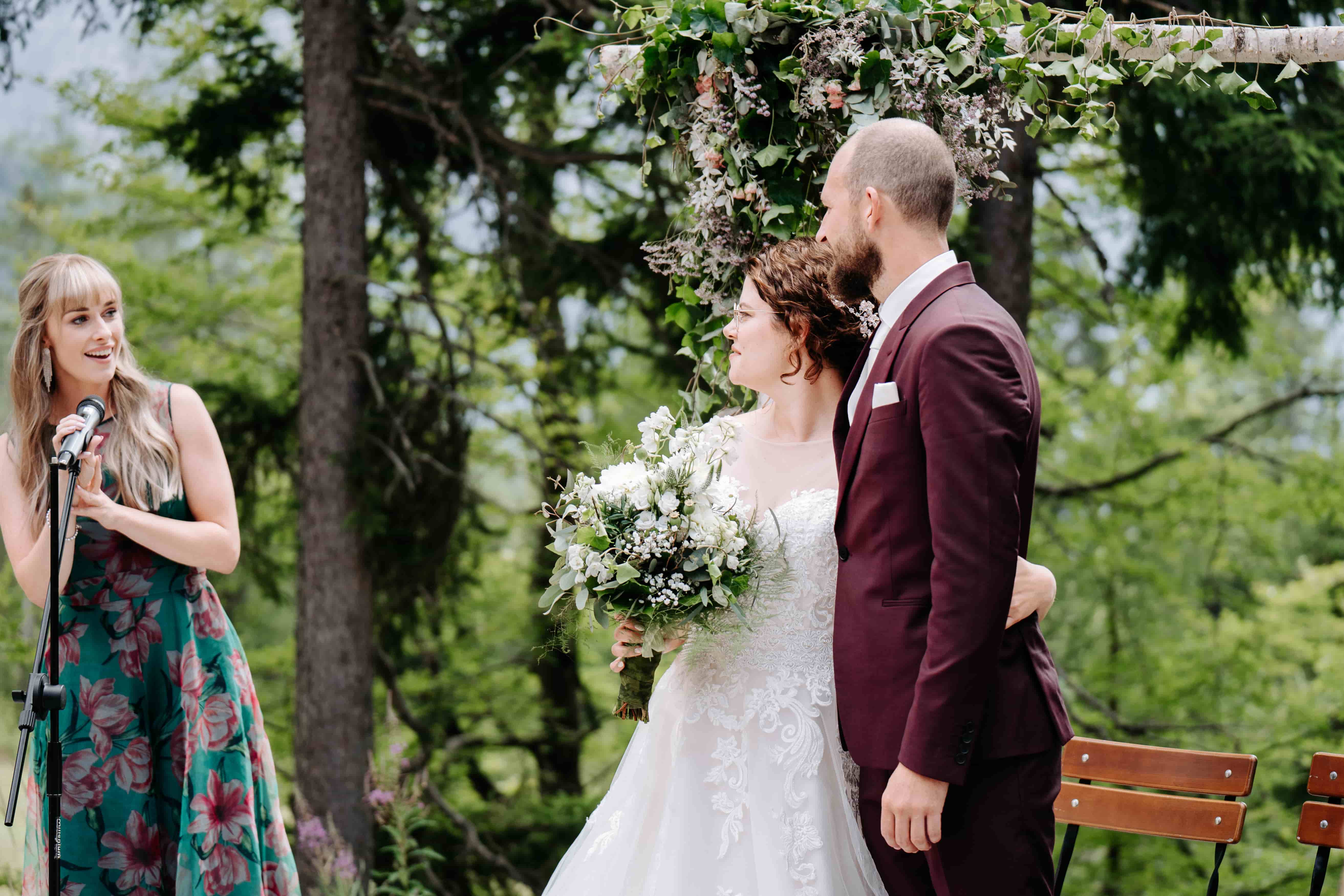 Na de first look gaan Lisa en Sander de bergen in voor hun trouwfotoโs. Ondertussen vermaken de gasten zich in het hotel, waarna ze met een shuttlebus naar de trouwlocatie gebracht worden. De sfeer zit er al direct goed in onder het bruidspaar en hun twintig belangrijkste vrienden en familieleden. Eรฉn van deze gasten had een wel erg bijzondere rol tijdens de bruiloft: โWe hebben een goede vriendin van ons, Stรฉphanie, gevraagd of ze wilde zingen.โ