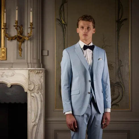 De trends in trouwpakken veranderen elk jaar. Momenteel zien we in 2025 veel driedelige pakken, moderne slim-fit silhouetten en natuurlijke tinten zoals beige, groen en blauw. Ook zijn trouwpakken met subtiele patronen en luxe stoffel, zoals linnen populair.