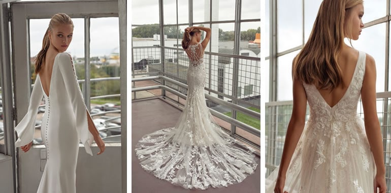 Trouwjurken met een laag rugdecolleté zijn niet alleen prachtig, maar ook nog eens heel verleidelijk. In combinatie met een snit staat de blote rug voor pure elegantie. Een geweldige keuze voor elke bruid die indruk wil maken op haar grote dag.