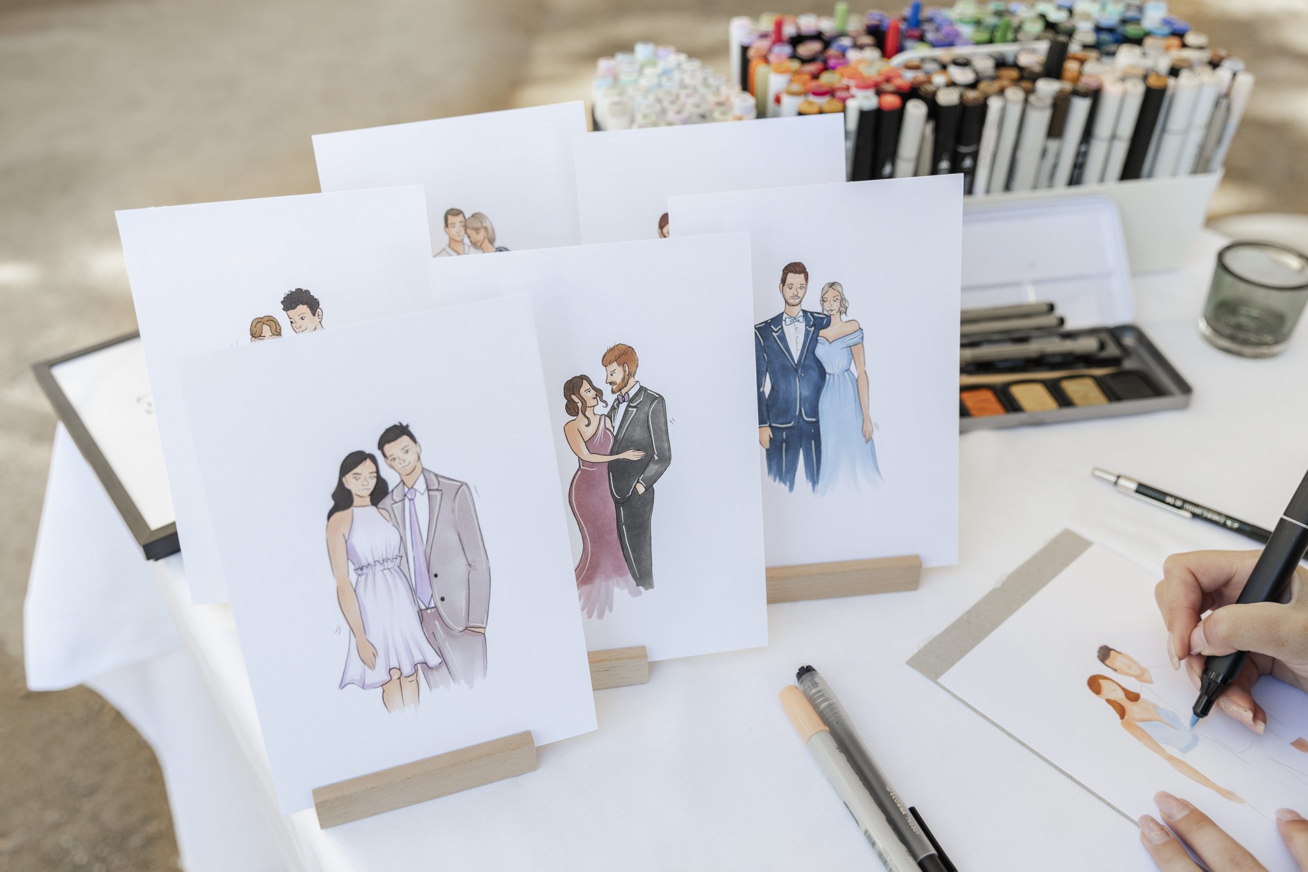 Ook de ceremonie kun je persoonlijk maken met eigen geloften of muziek die veel voor jullie betekent. Een creatieve extra is een live tekenaar of schilder die de gasten of het bruidspaar vastlegt: een uniek aandenken voor de gasten én een bijzonder kunstwerk voor jullie. Zo wordt jullie dag niet alleen persoonlijk, maar ook onvergetelijk voor iedereen.