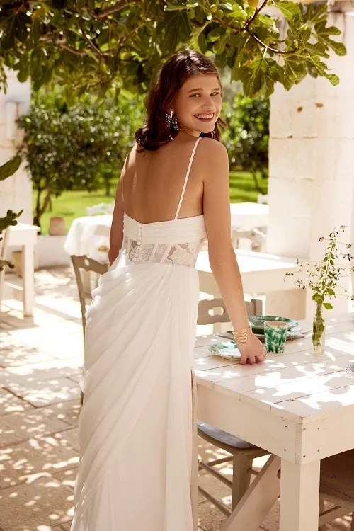 Deze lijn omarmt de vrije geest van de moderne bruid en verenigt moeiteloos bohemian charme met eigentijdse elegantie. Denk aan luchtige stoffen, verfijnde kanten details en silhouetten die jouw natuurlijke schoonheid laten stralen. Of je nu barefoot over het strand loopt of het jawoord geeft in een veld vol wilde bloemen, in een jurk van Lillian West voelt elk moment als pure magie.