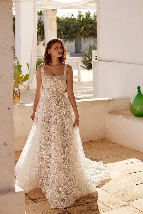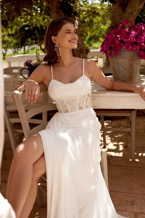 Laat je meevoeren door de magie van de nieuwste Fall/Winter 2025 collectie van Lillian West. Deze betoverende lijn bruidsjurken ademt romantiek, vrijheid en natuurlijke elegantie, perfect voor de bohemian bruid met een moderne twist.