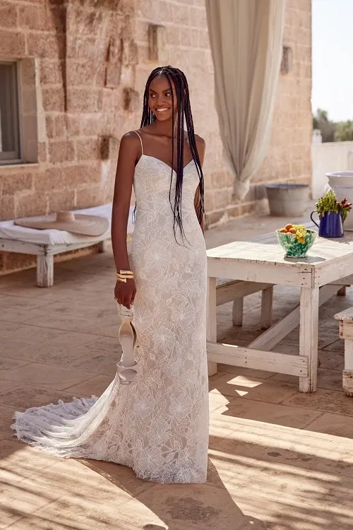 Elke jurk uit de Lillian West Fall/Winter 2025 collectie straalt de moeiteloze allure van moderne bohemian elegantie uit. De vloeiende stoffen, etherische rokken en zachte draperieรซn roepen een gevoel van vrijheid op, terwijl sexy splitten en opvallende mouwen een avontuurlijk randje toevoegen. Met matte rijgsluitingen en delicate texturen viert ‘Untamed Love’ de schoonheid van zuiverheid en de magie van eenvoud, voor bruiden die liefde zonder grenzen omarmen.