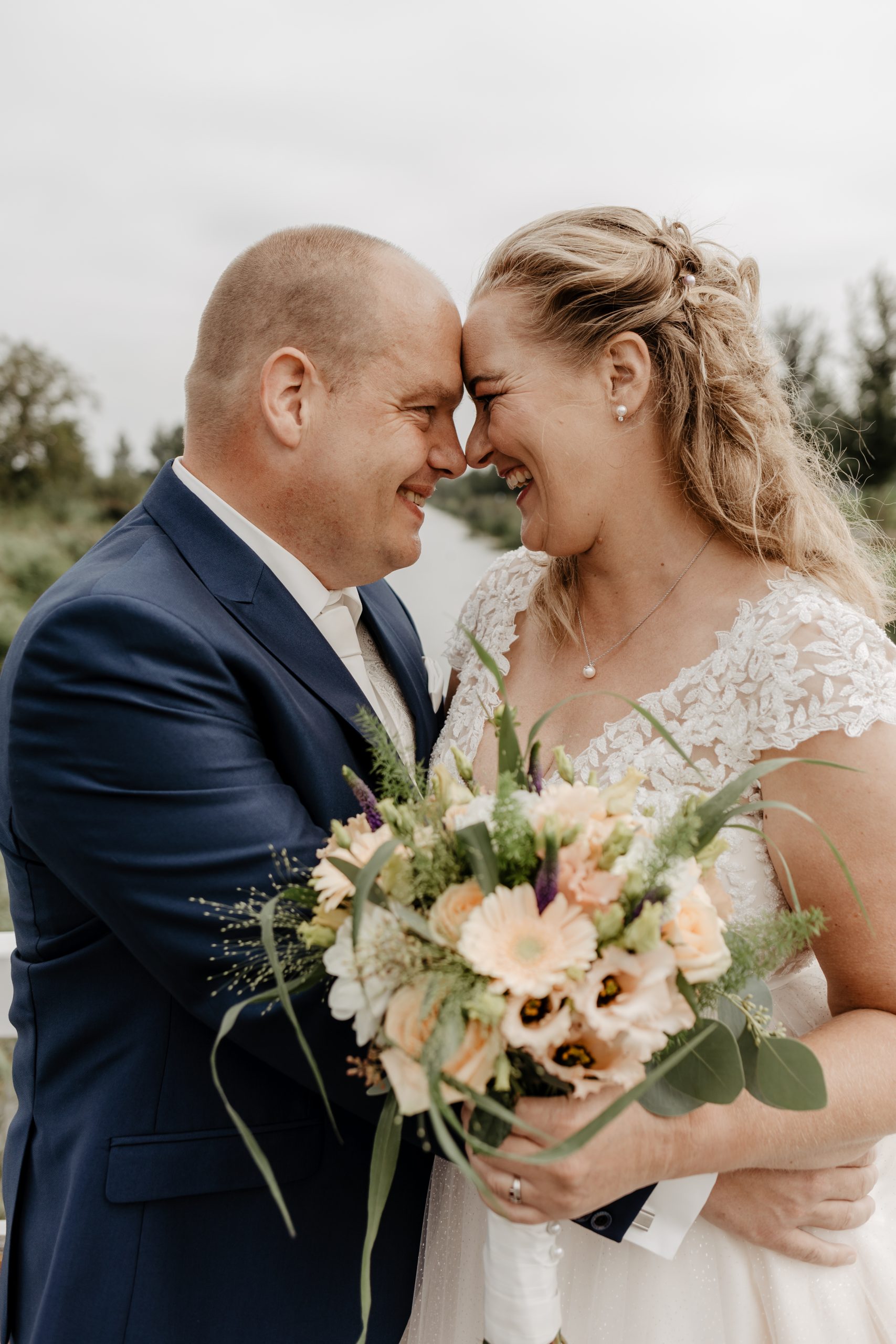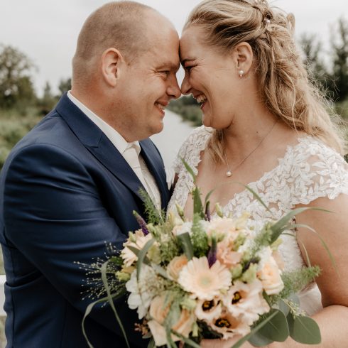 โWe zijn geen taart-types, maar meer van bier en bitterballen. Een proยญsecco-toost met bittergarnituur ernaast past veel beter bij ons. Tijdens de borrel speelde een jazzcombo: dat vond iedereen fantastisch. Voor de gasten hadยญden we een lopend barbecue-buffet geregeld. We zijn liefhebbers van goed vlees, daarom kozen we voor angus beef. Dat is niet te chic, maar wel van hoge kwaliteit en heel smakelijk.โ