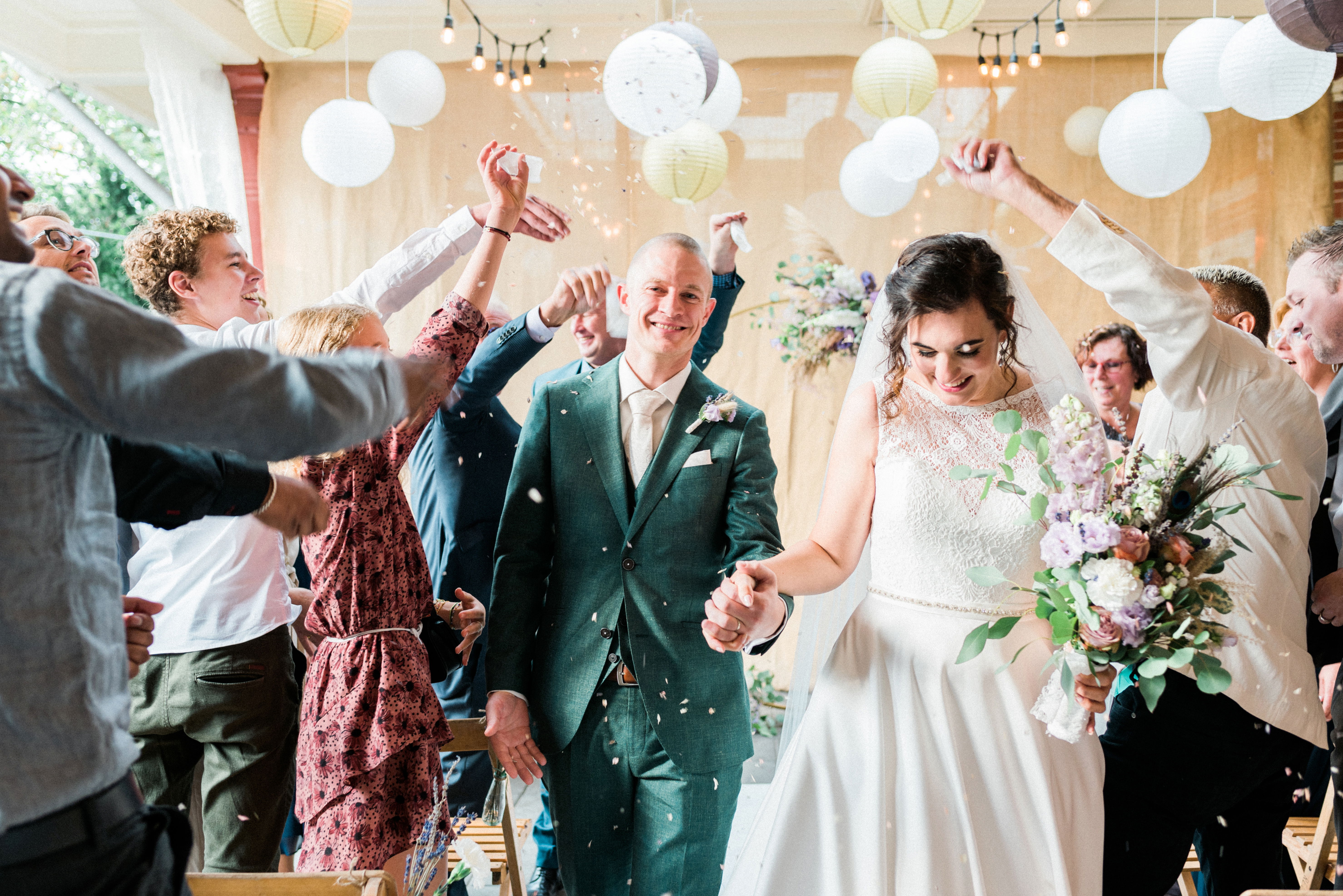 “We waren al vijftien jaar bij elkaar toen we besloten om te trouwen. Daarnaast hebben we sinds vijf jaar een geregistreerd partnerschap. Het wettelijke gedeelte van trouwen was voor ons daarom niet zo belangrijk, het symbolisch uitspreken van onze liefde en ons geluk was wat telde. We zagen het als een moment voor onszelf en onze geliefden. Daarom kozen we ook voor een klein gezelschap, zo bleef de dag heel intiem en warm.”