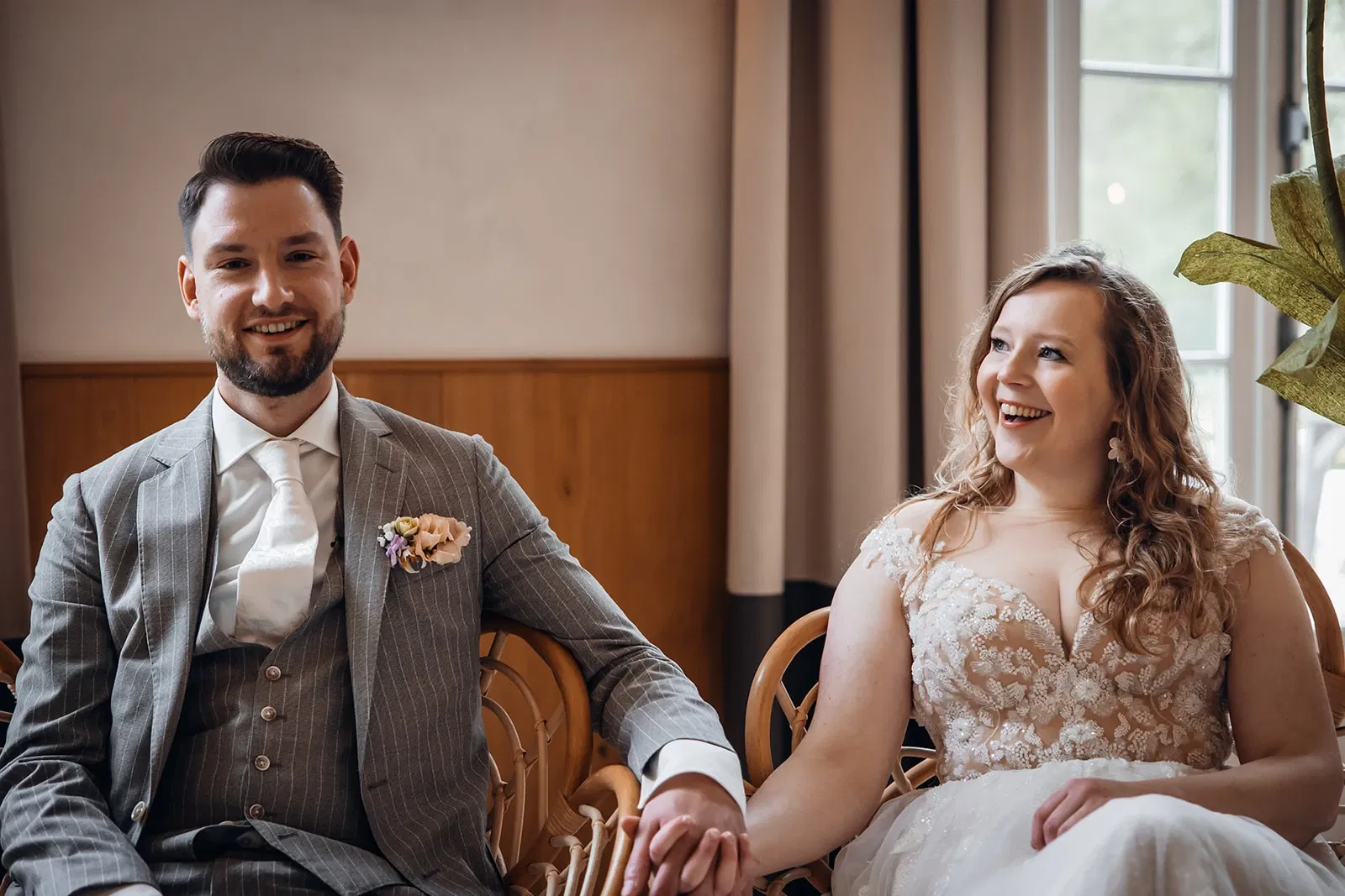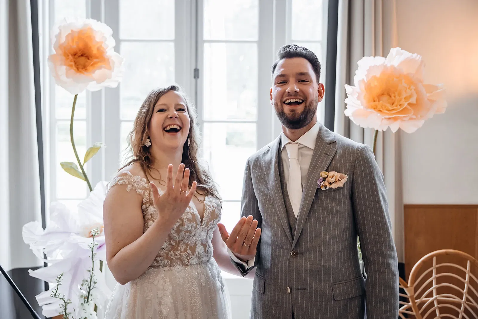 Ook Simone was compleet overdonderd door de trouwlook van haar man. “Ik had hem voor dat moment nog nooit in pak gezien, dus dat was wel echt heel gaaf! Hij zag er supermooi uit, echt een hele knappe man in dat pak,” vertelt ze.