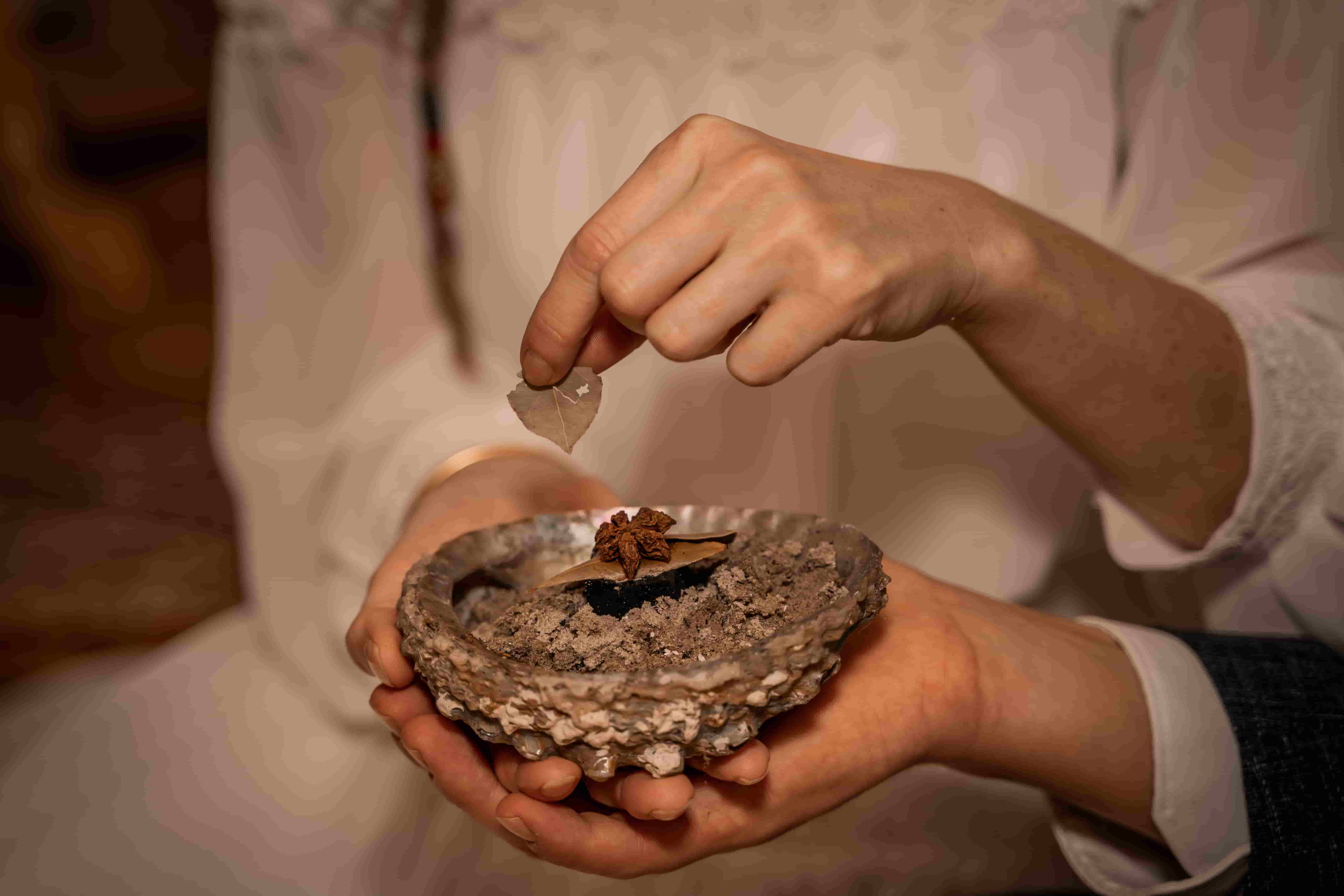 Een magisch idee voor natuurliefhebbers is een ceremonie met wierook. Speciaal geselecteerde geurige kruiden en bloemen worden symbolisch verbrand om slechte invloeden en nare energieรซn te verdrijven. Aan elk kruid en aan iedere plant worden andere spirituele kwaliteiten toegeschreven, dus kun je als bruidspaar jullie eigen perfecte mix samenstellen.