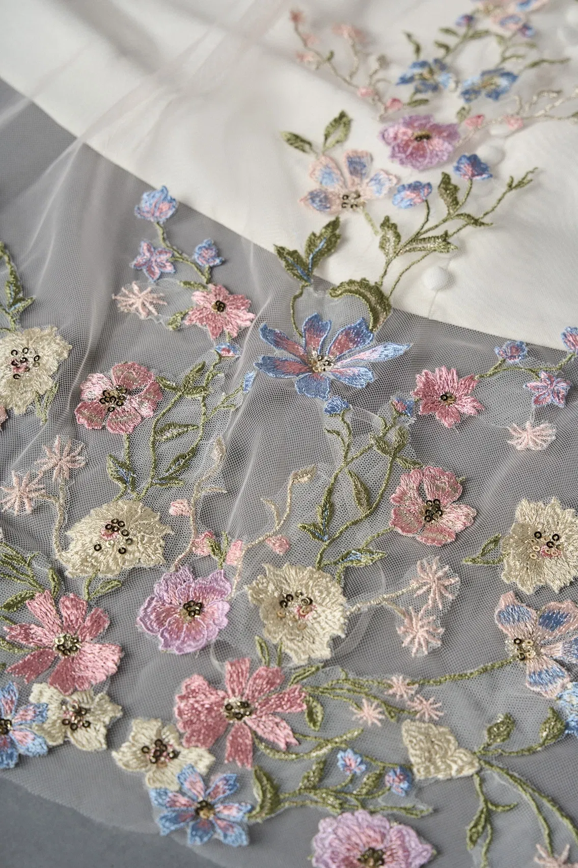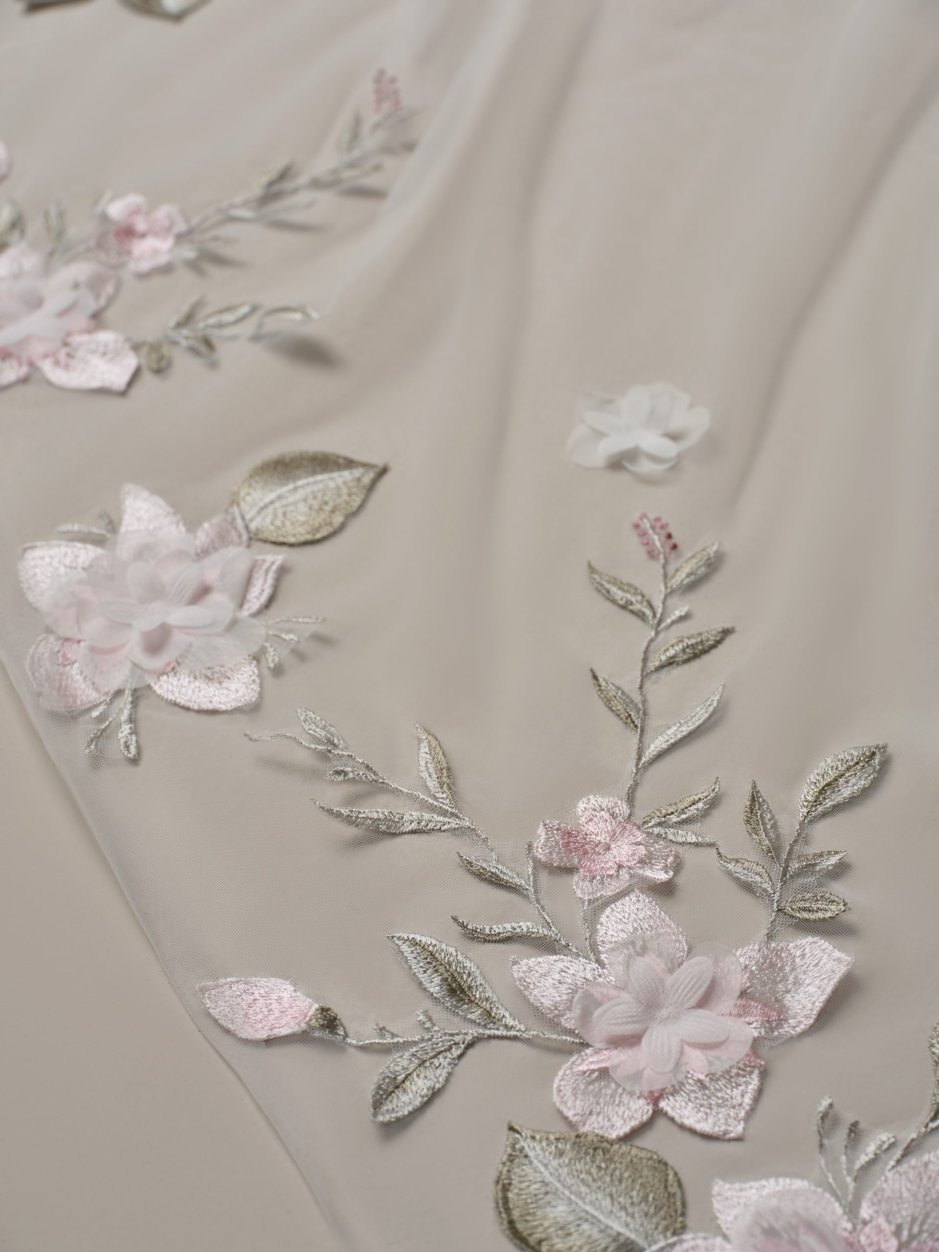 Een boho-prinsessenjurk heeft textuur! Denk dan bijvoorbeeld aan kant, vaak met bloem- of bladmotieven. Maar ook tule en chiffon, beide lichte en luchtige stoffen, zijn ideaal. Zij zorgen voor beweging. Handgehaakte details en 3D-details zoals opgezette bloemen en appliquรฉs zorgen voor de finishing touch.