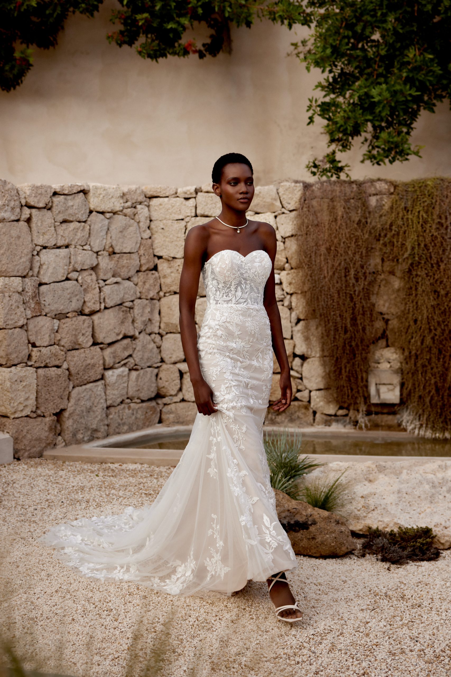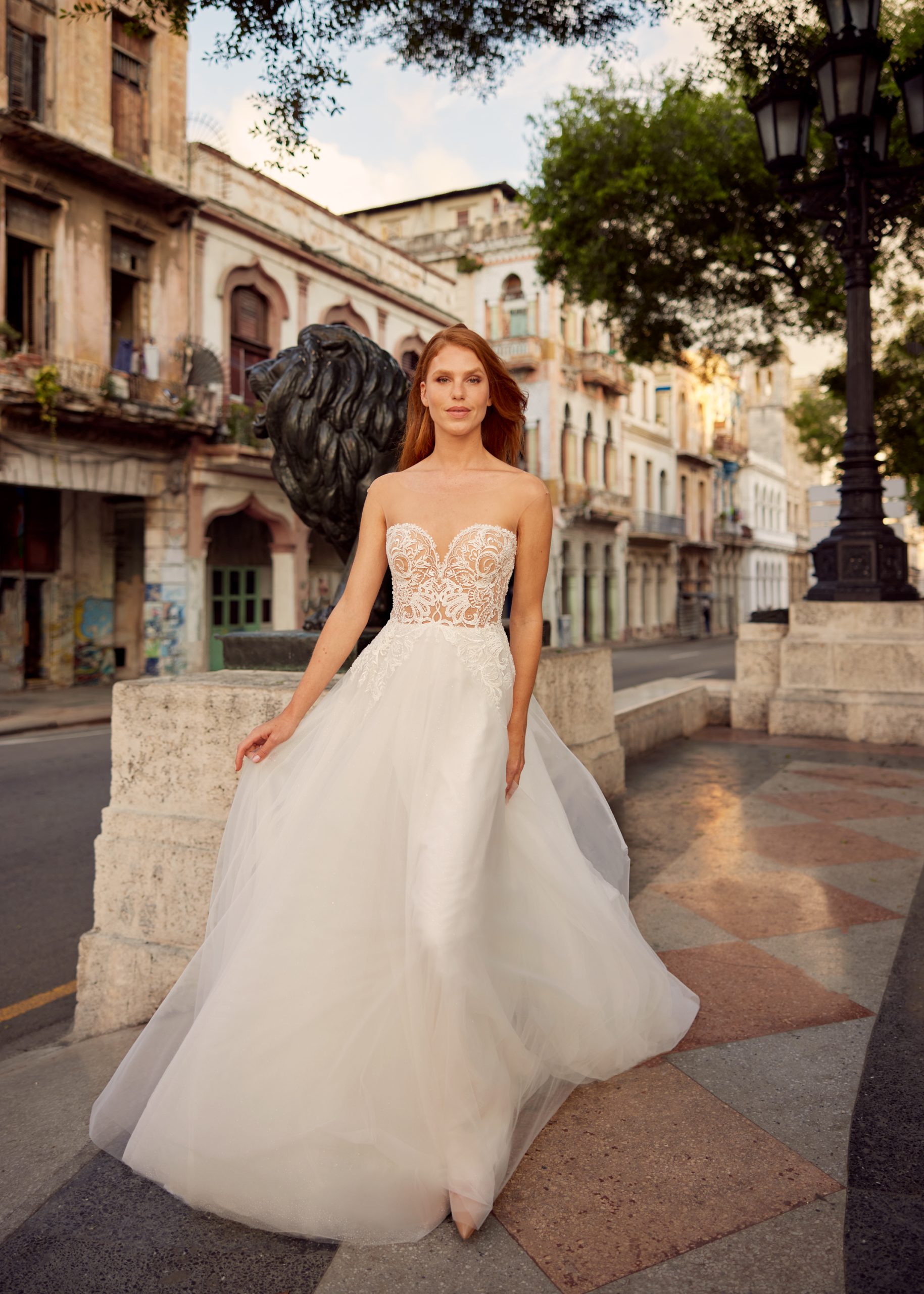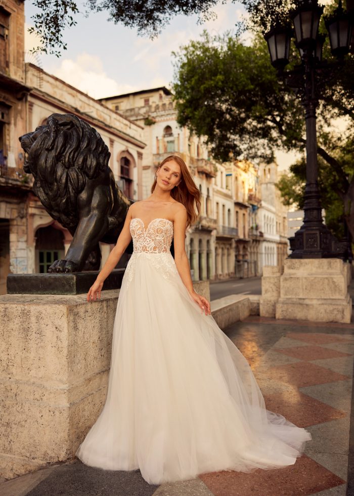 Deze halslijn werkt het best bij bruiden met een kleinere tot middelgrote boezem en rechte schouders. Het allerbelangrijkste bij een strapless jurk? De perfecte pasvorm! Het is belangrijk om een goed passende jurk te kiezen, zodat hij stevig blijft zitten.