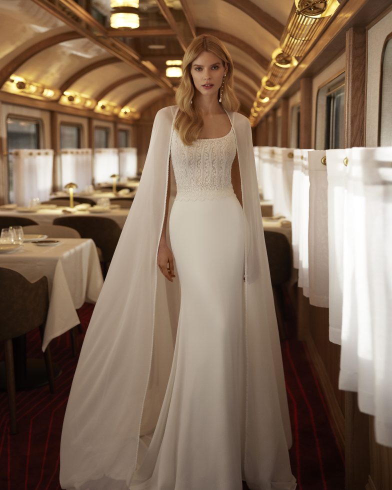 Deze stijl is ideaal voor bruiden die hun sleutelbeen en schouders willen showen. Bruiden met bredere bovenarmen kunnen deze stijl beter vermijden, omdat hij hier de aandacht op legt. Wil je de look helemaal afmaken? Draag je haar opgestoken om de unieke snit extra te laten stralen en houd de sieraden subtiel – een paar verfijnde oorbellen of een elegante armband zijn genoeg.