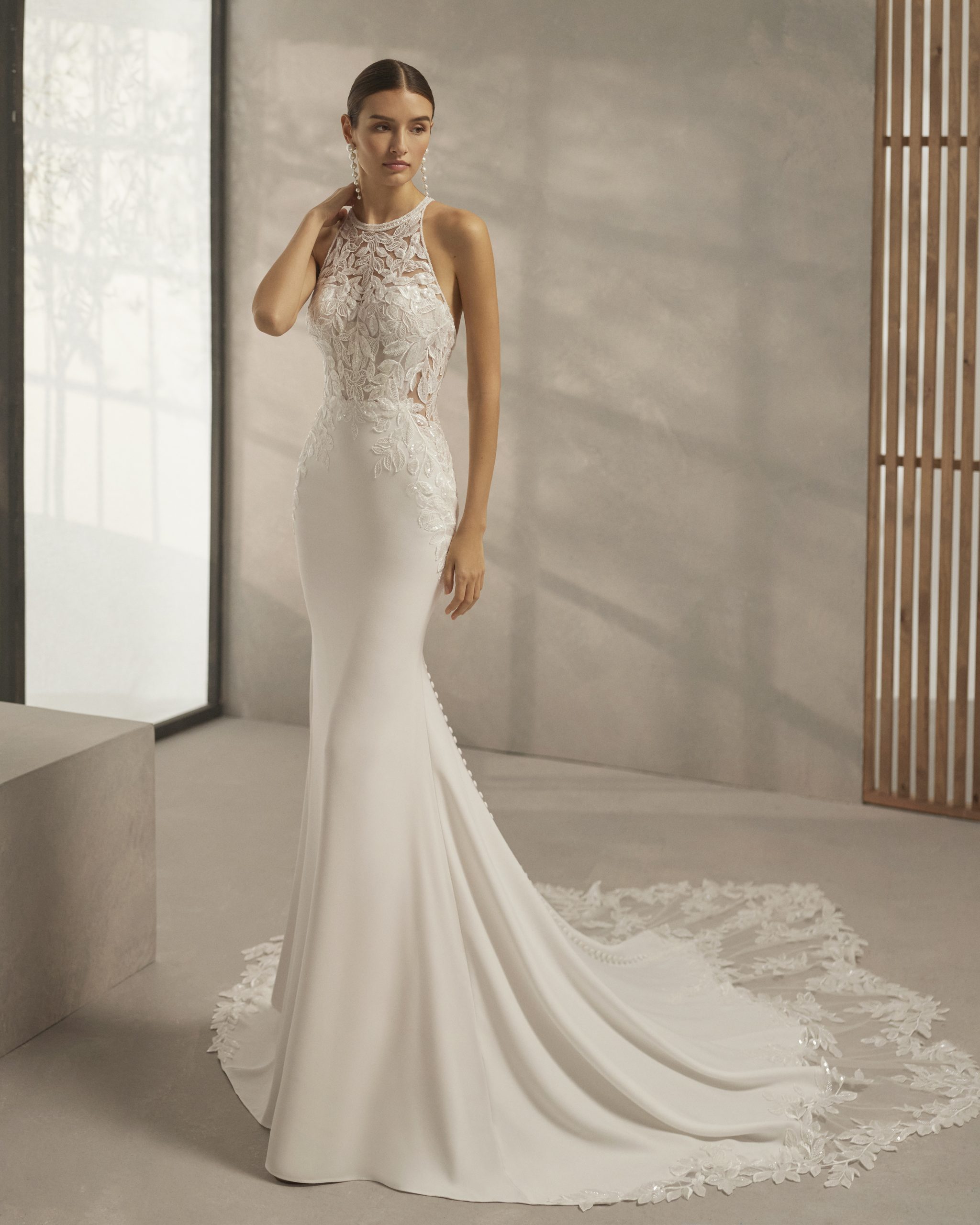 Deze stijl is ideaal voor bruiden met een slank bovenlichaam en mooi gevormde schouders, omdat het de nadruk legt op de bovenrug en schouders. Daarnaast creëert de halternek optisch lengte, waardoor hij ook flatterend is voor kleinere bruiden die graag wat langer willen lijken.
