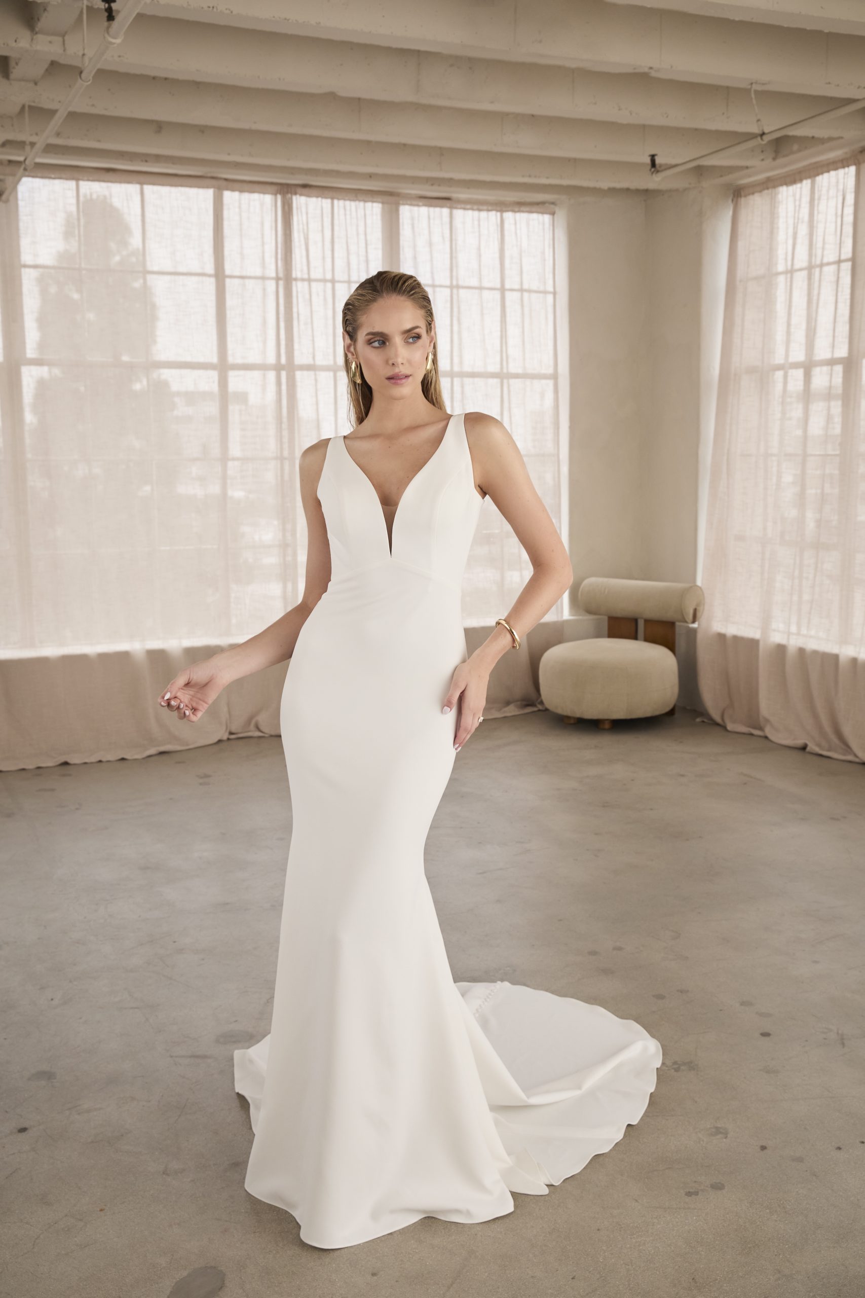 Deze stijl is perfect voor bruiden met een appelvormig figuur of een bredere borst, omdat hij lengte toevoegt en de aandacht naar beneden trekt. Wil je er extra sexy uitzien? Kies dan een diepere V-hals. Een subtiele V-hals zorgt daarentegen voor een klassieke en tijdloze uitstraling.