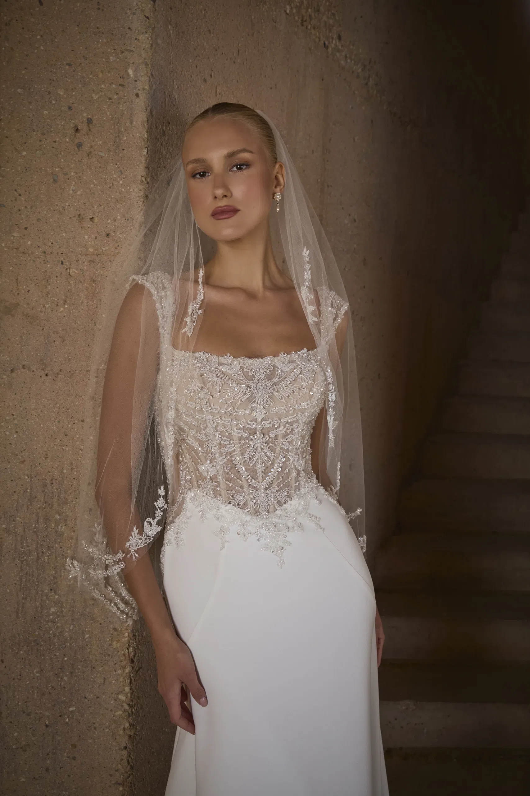 De trend van doorschijnende stoffen in je trouwjurk blijft groeien en wij snappen wel waarom! Transparante tule, illusie-stoffen en subtiele kantenapplicaties geven een trouwjurk een dromerige, bijna magische uitstraling. Denk aan een lijfje dat zachtjes de huid laat doorschemeren, zoals die van Casablanca, of mouwen die lijken te zweven door fijne tule. Het is de perfecte balans tussen klassiek en modern: vrouwelijk, sensueel, maar altijd stijlvol. Vooral populair zijn jurken met doorschijnende ruggen of illusiedetails rond het decolleté net dat beetje lef zonder te veel bloot te geven