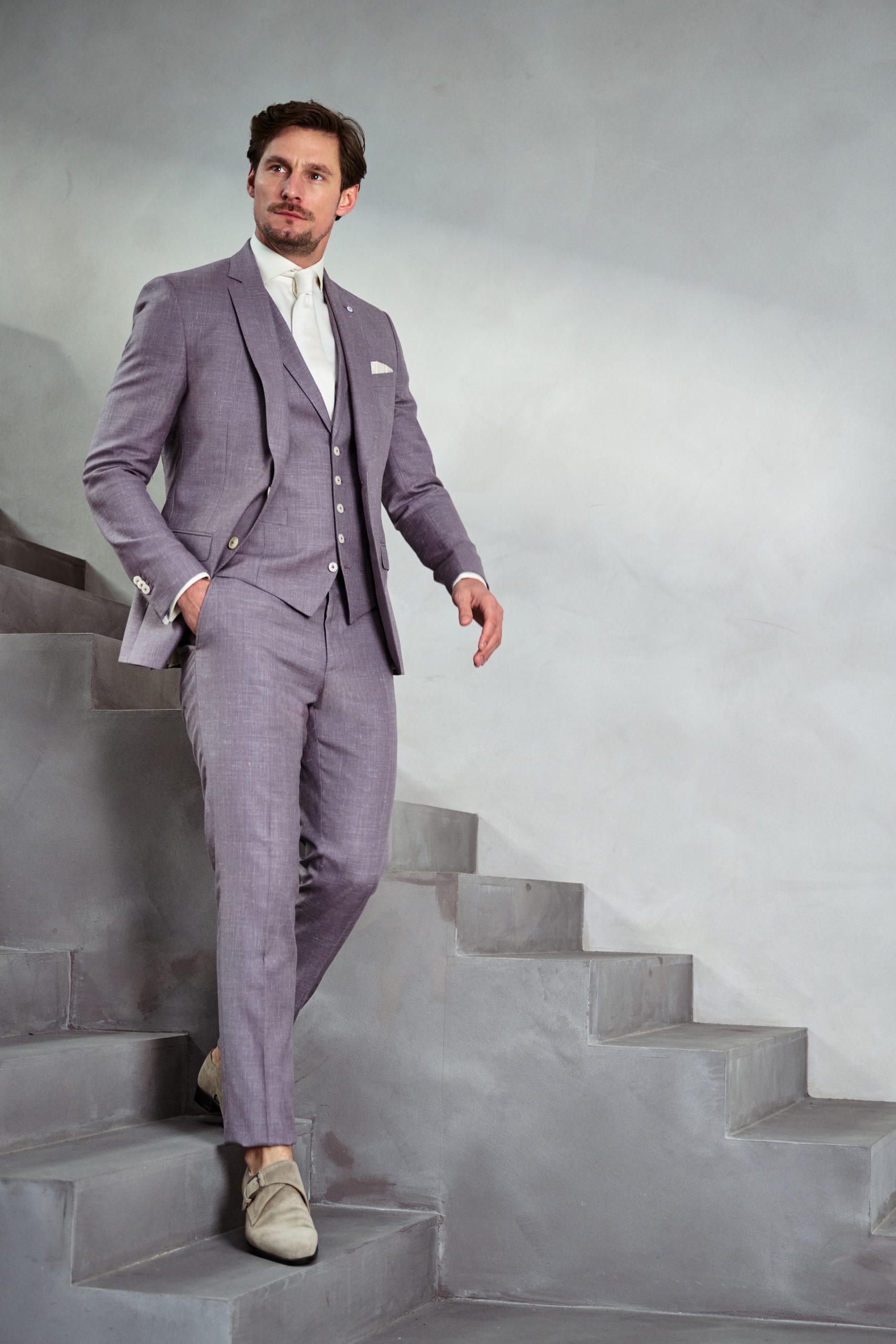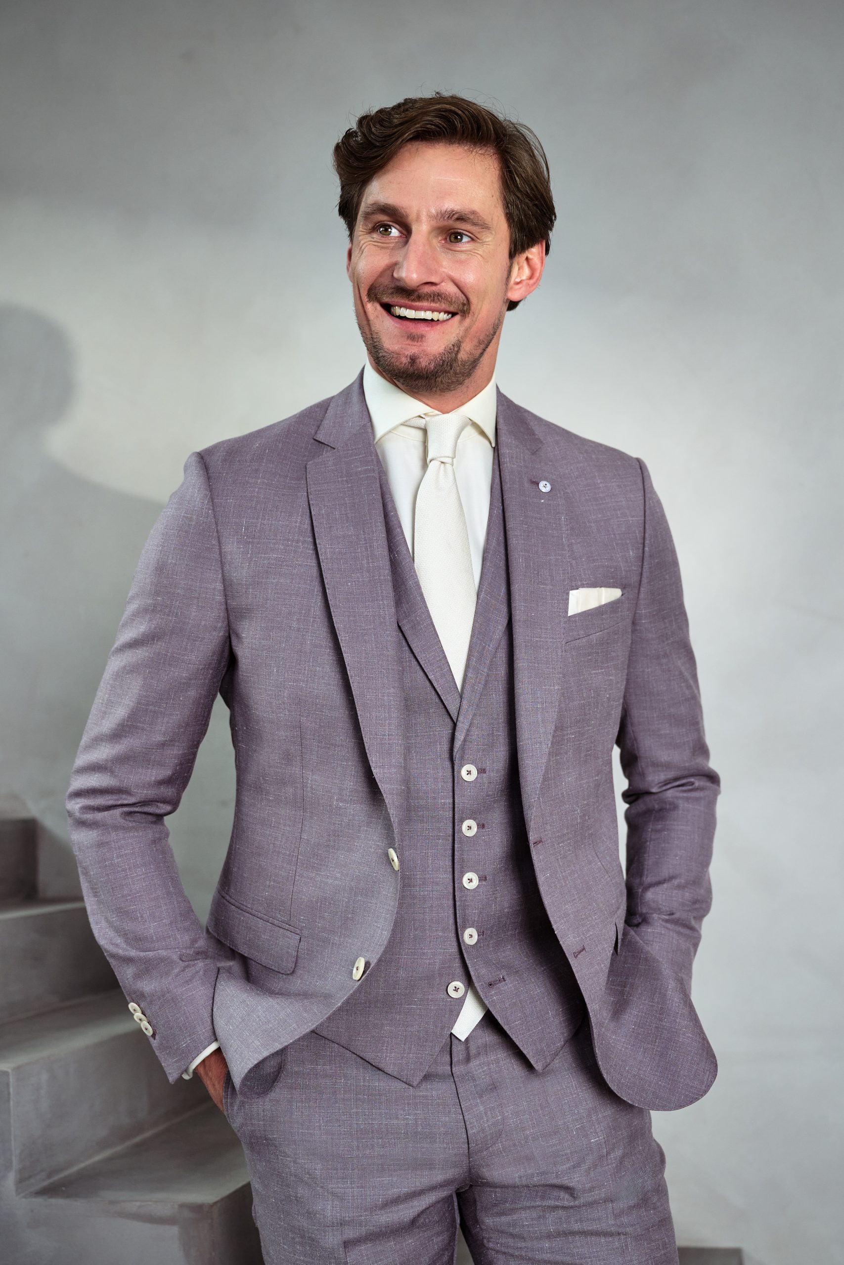 Bjorn & Marcella gaven elkaar het jawoord โ en wat straalden ze samen van top tot teen! Voor deze romantische dag koos Bjorn voor een stijlvol grijs-lila trouwpak. Een kleur die net even anders is dan roze: iets koeler, iets ingetogener, maar minstens zo bijzonder. Het pak was zacht van tint, maar sterk in uitstraling. Gefeliciteerd Bjorn & Marcella.