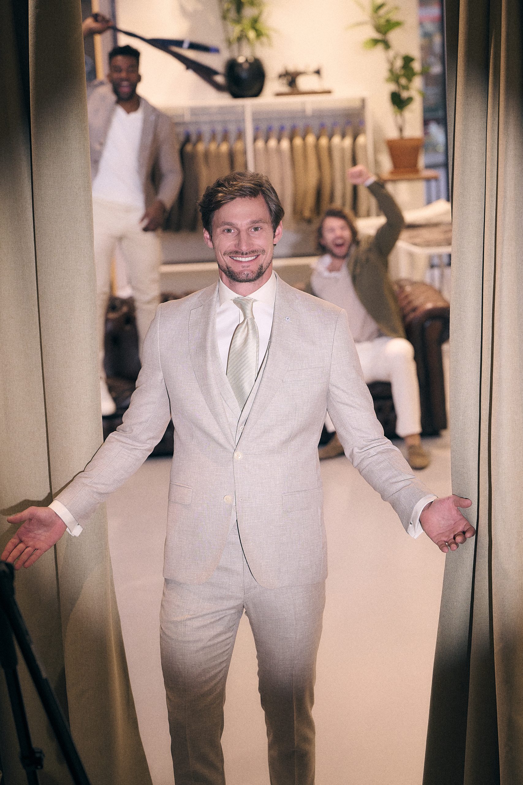 Femke & Olof straalden, met Olof in een donkerblauw Boss pak. Klassiek en modern tegelijk โ een krachtige look voor een bijzonder moment. Peter & Mariska gaven elkaar het jawoord โ en wat gunnen we hen het geluk! Peter trouwde in stijl met een look uit de Dutch Dandies X Arno kantelberg collectie: een pak met een touch of disco waarmee hij zonder twijfel de show stal. En dan Giovanni en Hinke โ een heerlijk stel! Giovanni koos voor lichtblauw: fris, zomers en helemaal van nu. Hij straalde, net als hun grote dag.