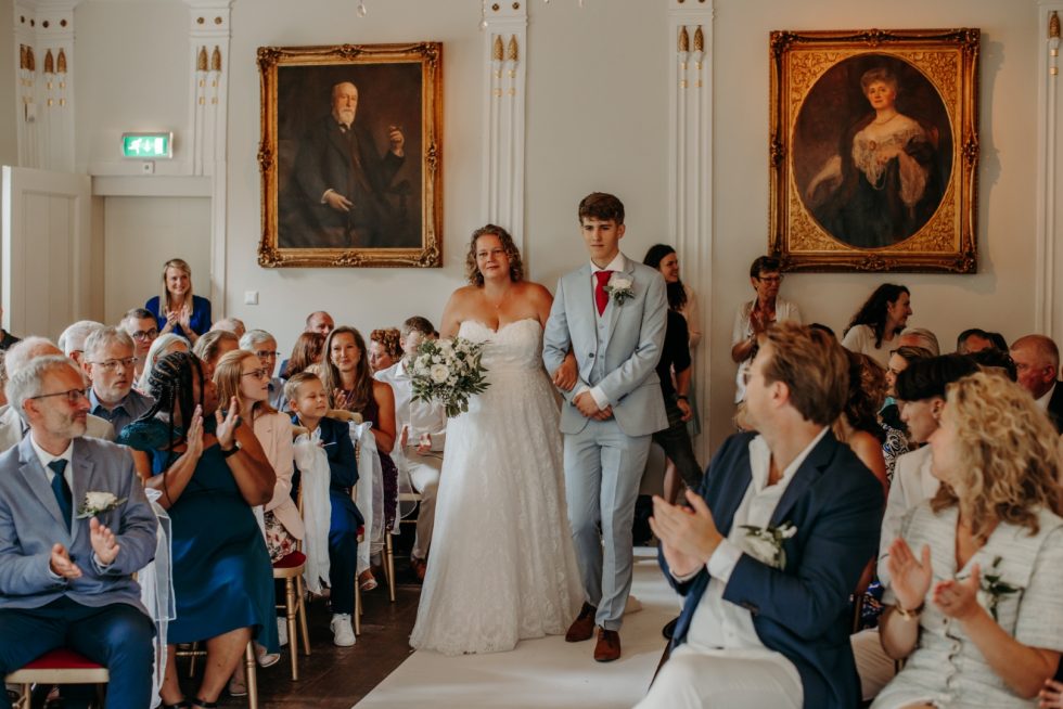 “Na de fotoshoot in de kasteeltuin en het laantje arriveerden de daggasten en begon om 13.30 uur de ceremonie in het prachtige Kasteel van Rhoon. Voor Peter was het naar binnenlopen met zijn kinderen hét moment van de dag. Voor mij was het spannend om mijn zoon te zien en tegelijk zo te hopen dat hij trots zou zijn. Het was heel emotioneel, net als het weerzien van mijn moeder bij haar graf, waar we na de ceremonie langs gingen. Daarna vertrokken we naar De Schaapskooi in Delft. We begonnen met een barbecue en sloten de avond af met een geweldig feest.”