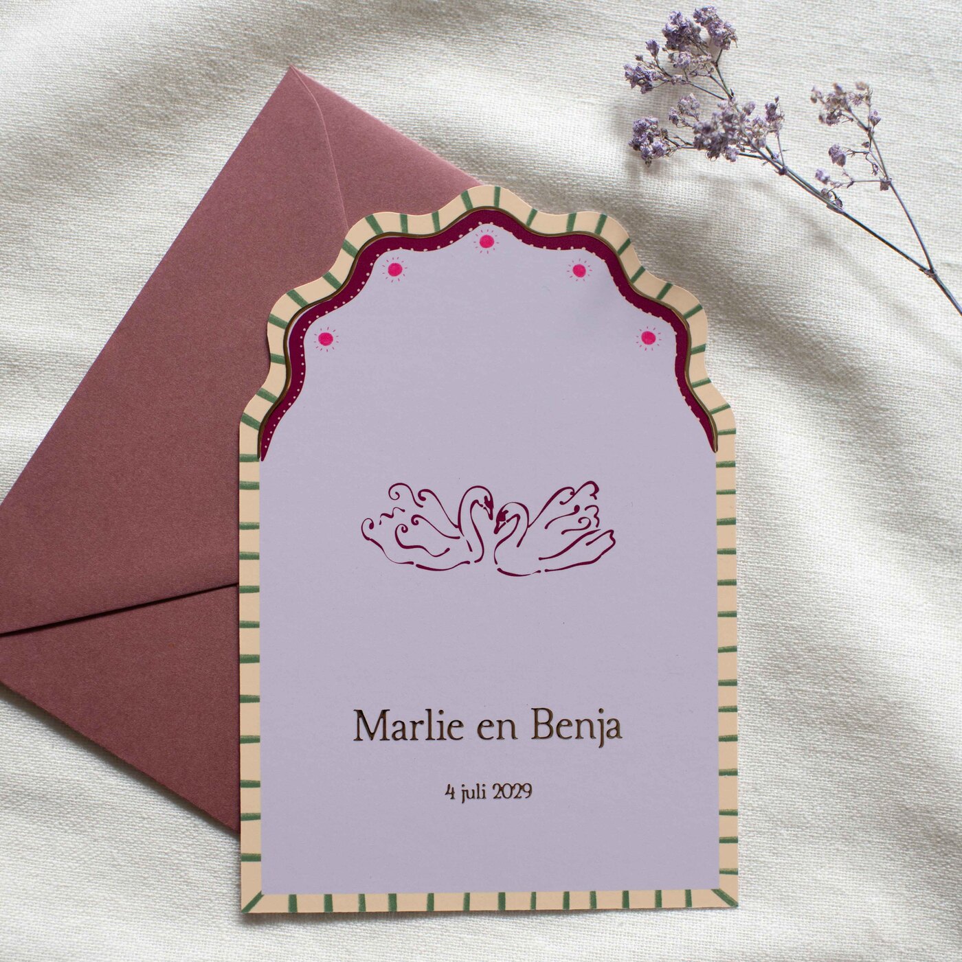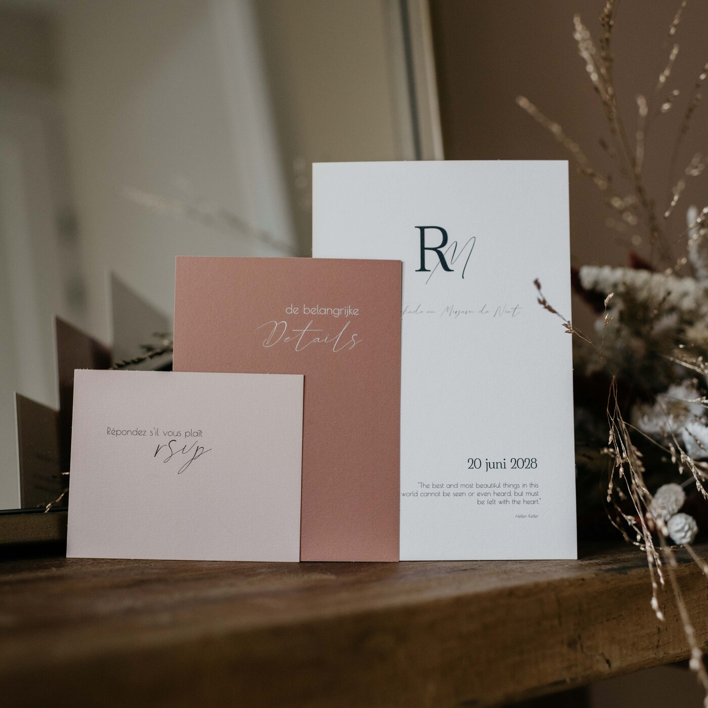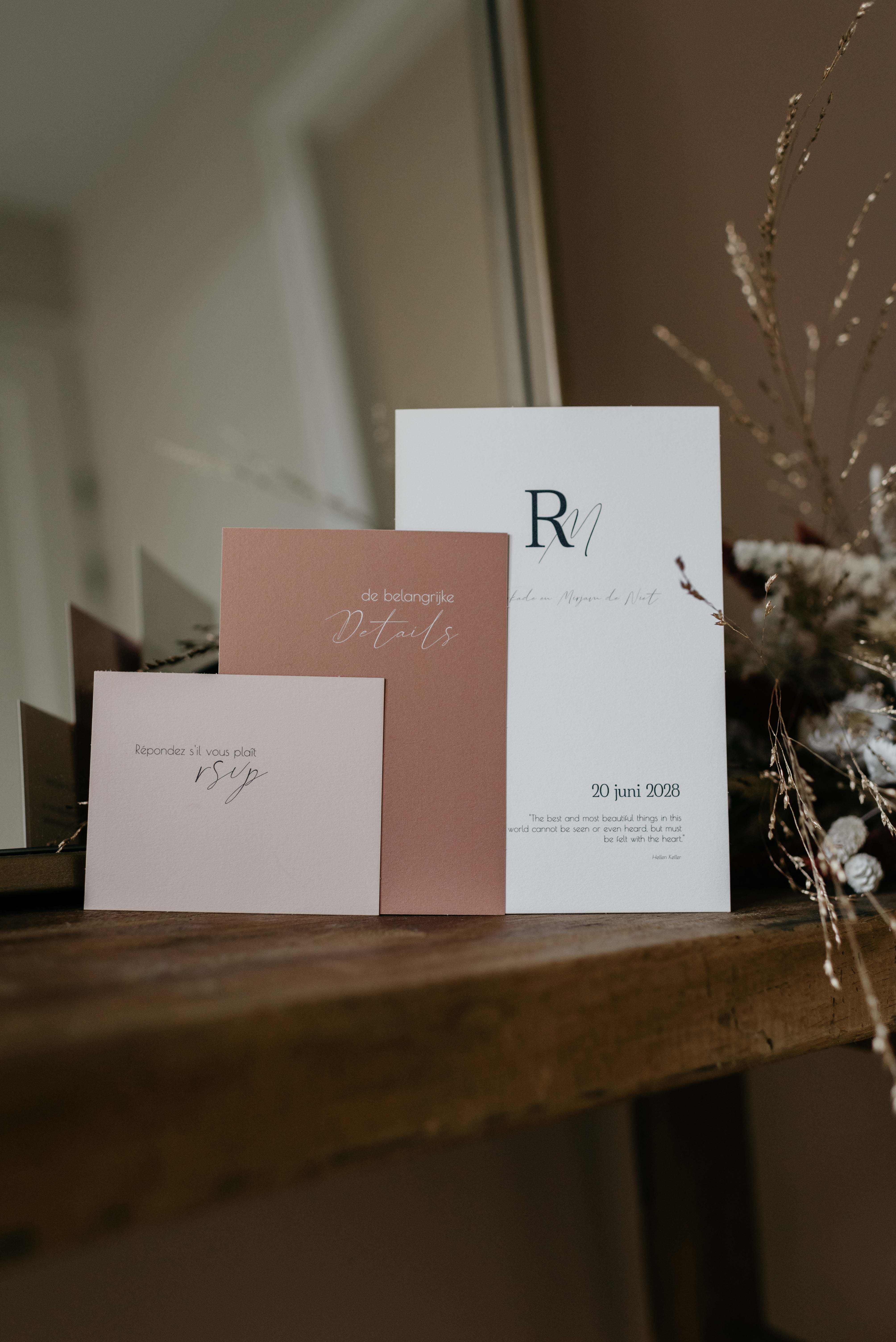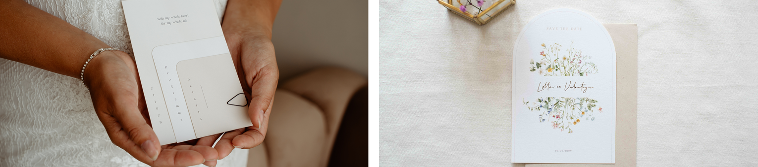 Zeg “ja!” tegen de perfecte trouwkaart! Bij Studio Dijs vind je unieke trouwkaarten die jullie bruiloft een stijlvolle en persoonlijke uitstraling geven. Van moderne en minimalistische ontwerpen tot romantische kaarten met een unieke afwerking; bij Studio Dijs ontwerp je eenvoudig een trouwkaart die echt bij jullie past. In de online editor ontwerp je eenvoudig je eigen trouwkaart: pas kleuren, tekst en lettertypes aan of voeg je eigen afbeeldingen toe. Zo maak je in een paar stappen een kaart die perfect bij jullie past. Wil je eerst zien hoe je ontwerp eruitziet? Bestel dan een proefdruk, al vanaf €1,-. Wil je de stijl van je trouwkaart doortrekken in de rest van jullie bruiloft? Bij studio Dijs vind je alles voor een completen trouwhuisstijl. Denk aan Save the Date kaarten, menukaarten, naamkaartjes, welkomstborden, dagplanningen en nog veel meer. Alles in één lijn, zodat jullie bruiloft tot in detail klopt. De klantenservice van Studio Dijs staat klaar om te helpen bij vragen of speciale wensen, zodat jullie drukwerk helemaal perfect wordt. Bekijk de volledige collectie op onze site: studiodijs.nl