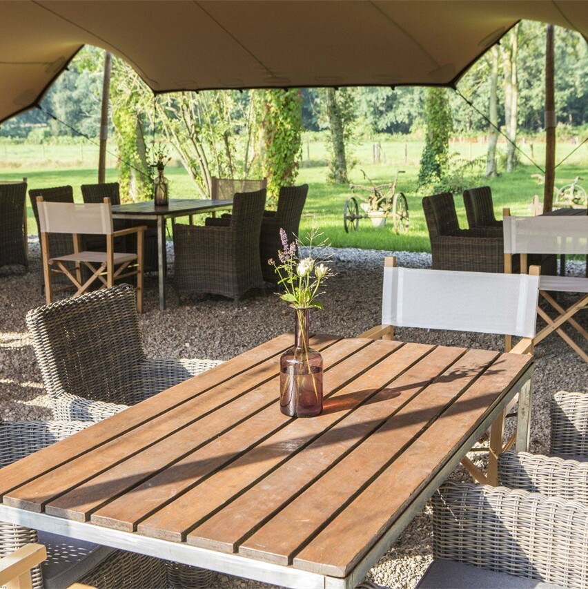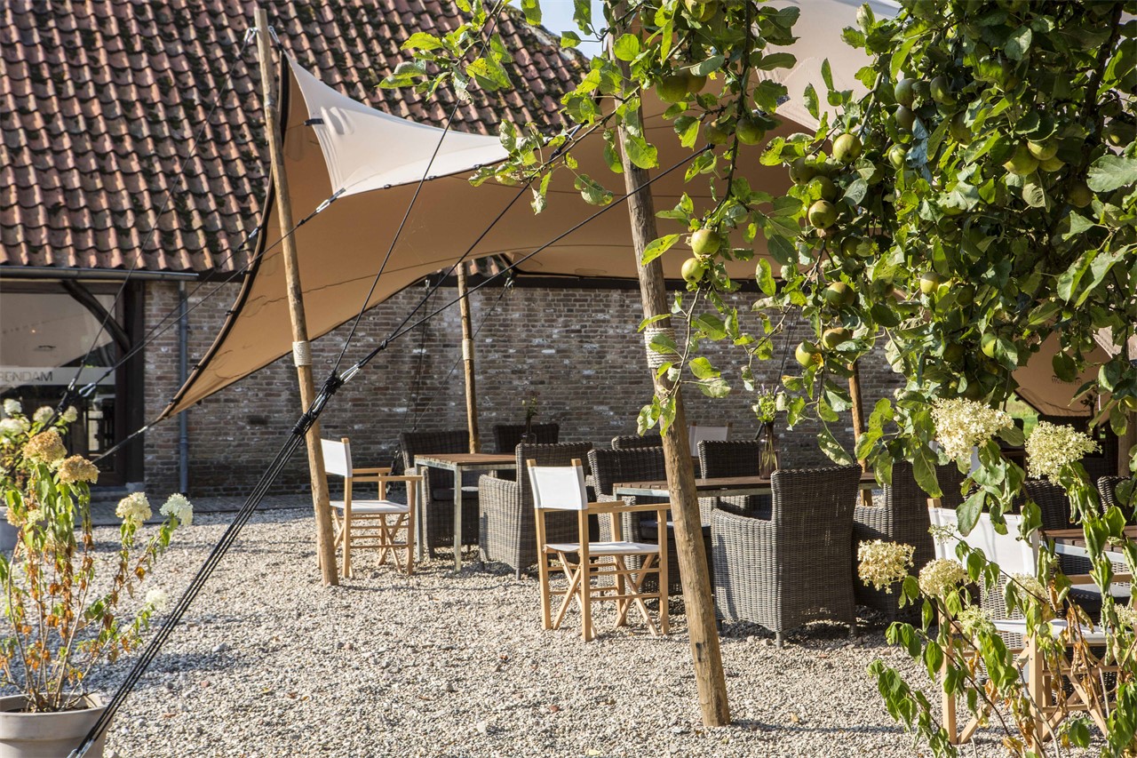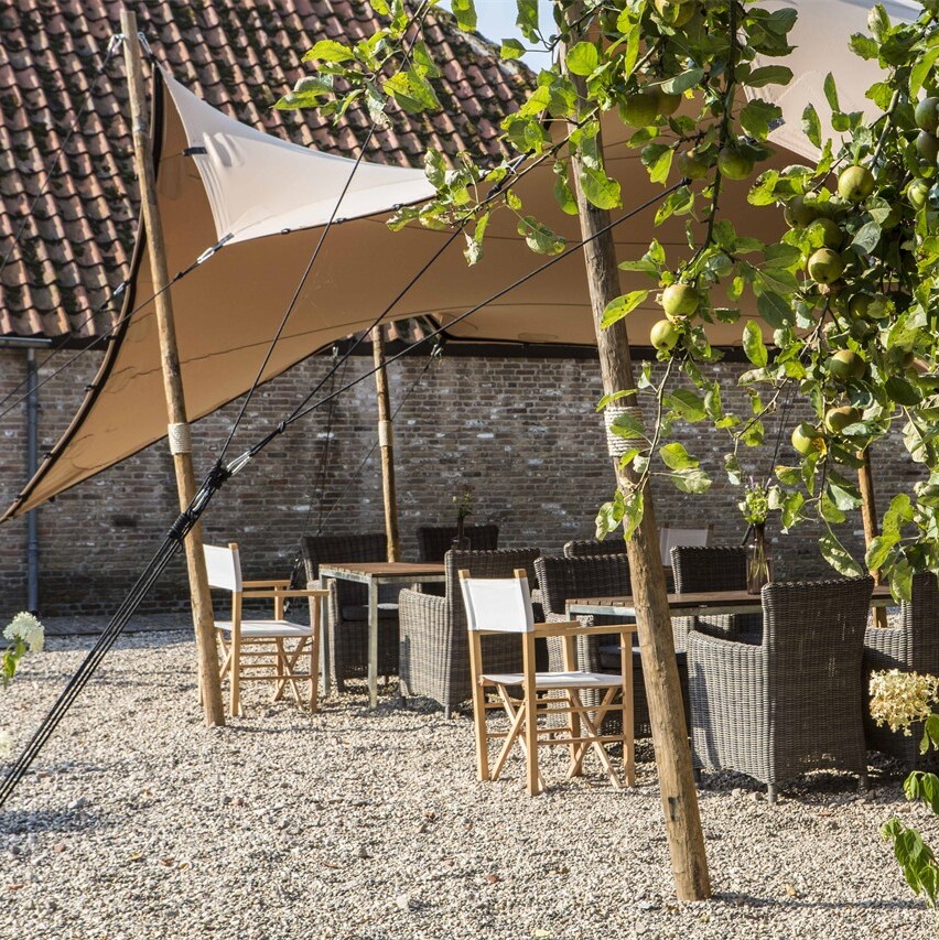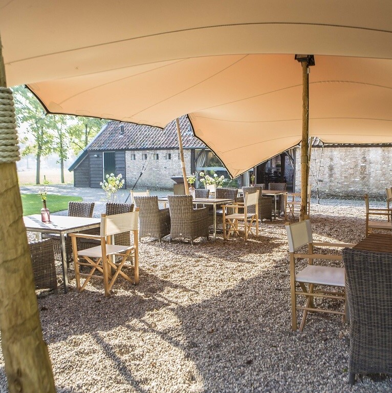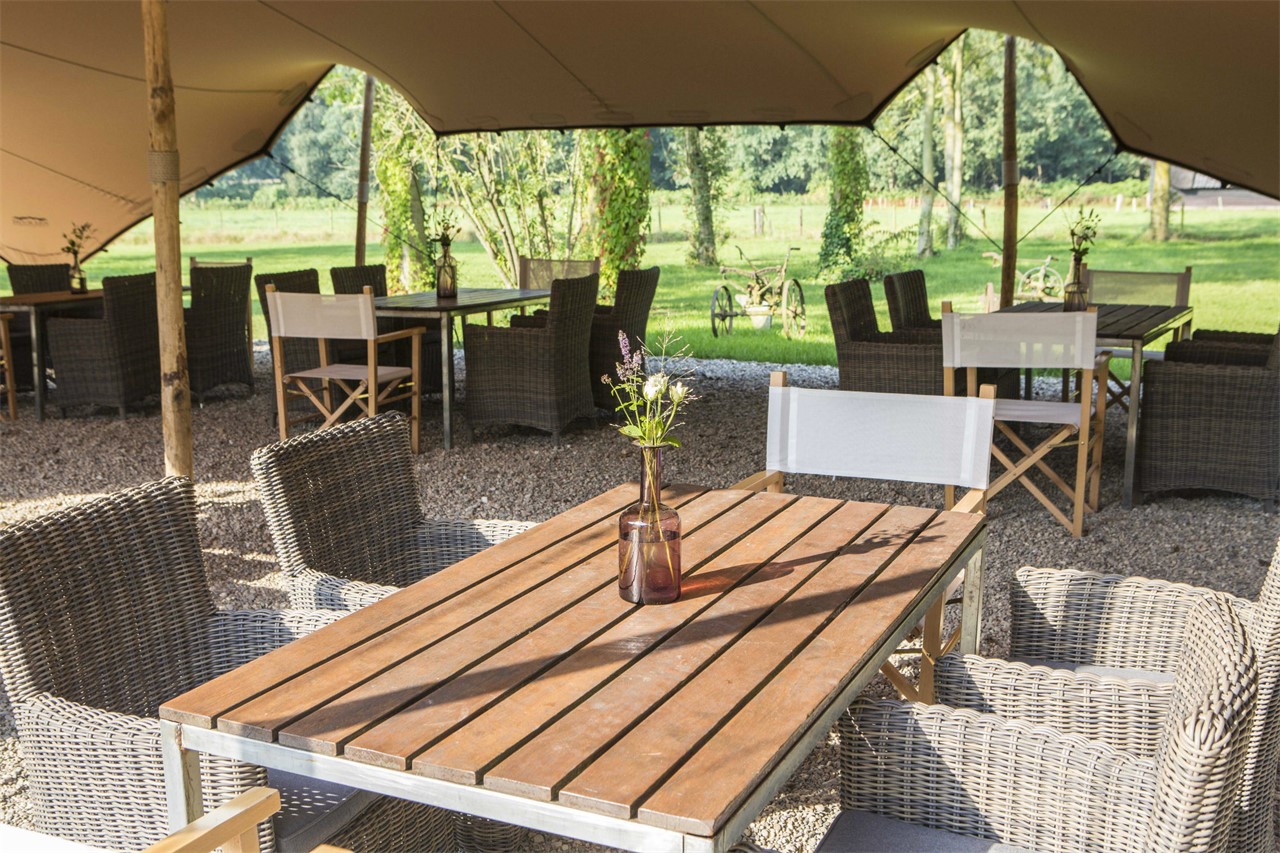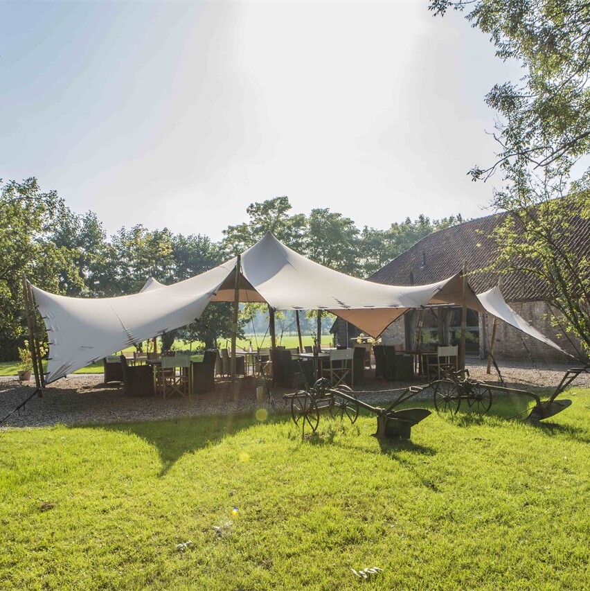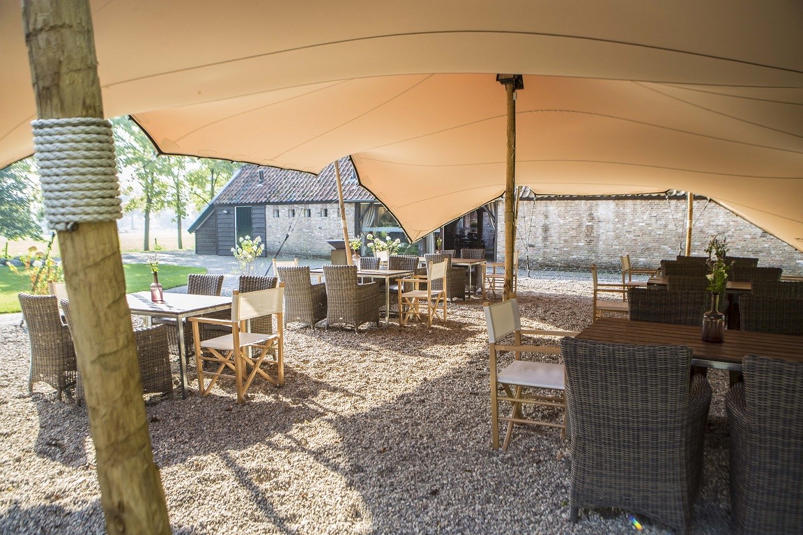Mooi weer? Dan is het terras dé plek voor het aansnijden van de bruidstaart, een champagnetoost of een ontspannen buitenreceptie. Geniet van een barbecue of outdoor diner tussen de fruitbomen terwijl de kinderen spelen op de grasvelden rond de hoeve. En ‘s avonds combineer je gewoon het beste van binnen én buiten. Lekker rustig praten in de tuin, swingen op live muziek in de hoeve of ontspannen aan de bar: zo beleven jullie en alle gasten een onvergetelijke dag!