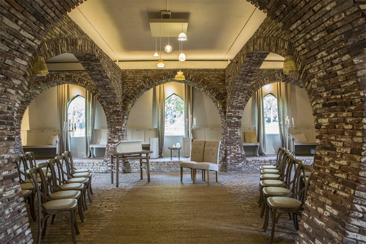 De monumentale hoeve is een officiële trouwlocatie. Je kunt daardoor jullie hele huwelijksdag doorbrengen op deze locatie. Dat scheelt veel stress en reistijd. De hoeve biedt plaats aan 350 gasten en is op te delen in kleinere ruimtes, waardoor ook kleine gezelschappen zich thuis voelen. Naast de hoeve staat bovendien de karakteristieke burcht, een authentieke ruimte met stenen bogen en vensterramen. De perfecte plek voor bijvoorbeeld het ja-woord!